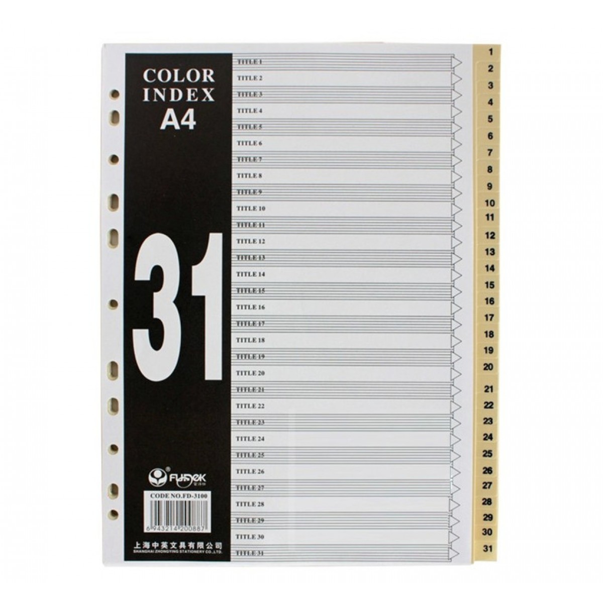 富得快 FD3100塑料 分类索引卡 PVC数字1-31页分页纸隔页纸分类纸