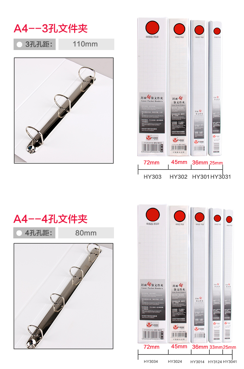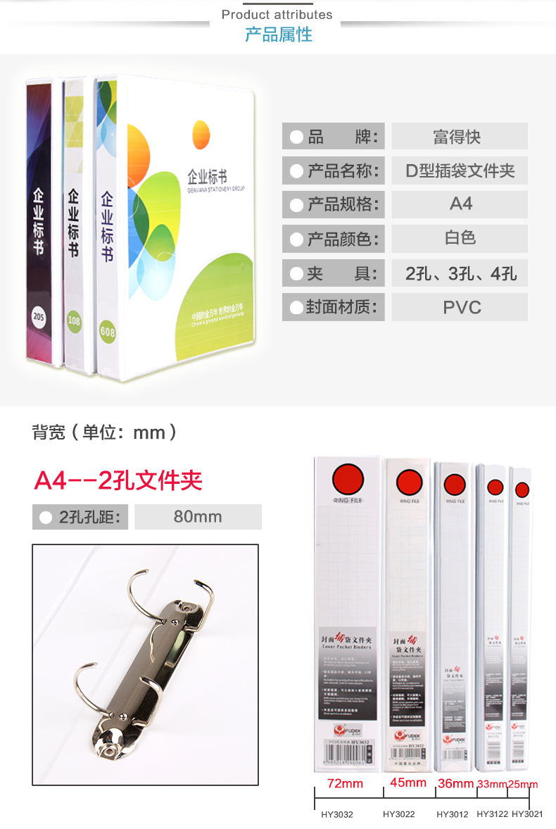 商品名称:富得快 带孔插袋文件夹 A4 白夹 2孔3孔4孔文件夹 打孔夹/活页夹