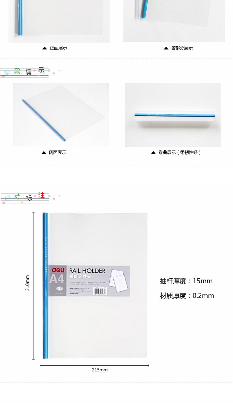 商品名称:得力 10个装加厚抽杆夹 a4拉杆夹透明 学生办公工书皮夹子简历会议合同收纳整理分类报告资料夹抽干文件夹竖式