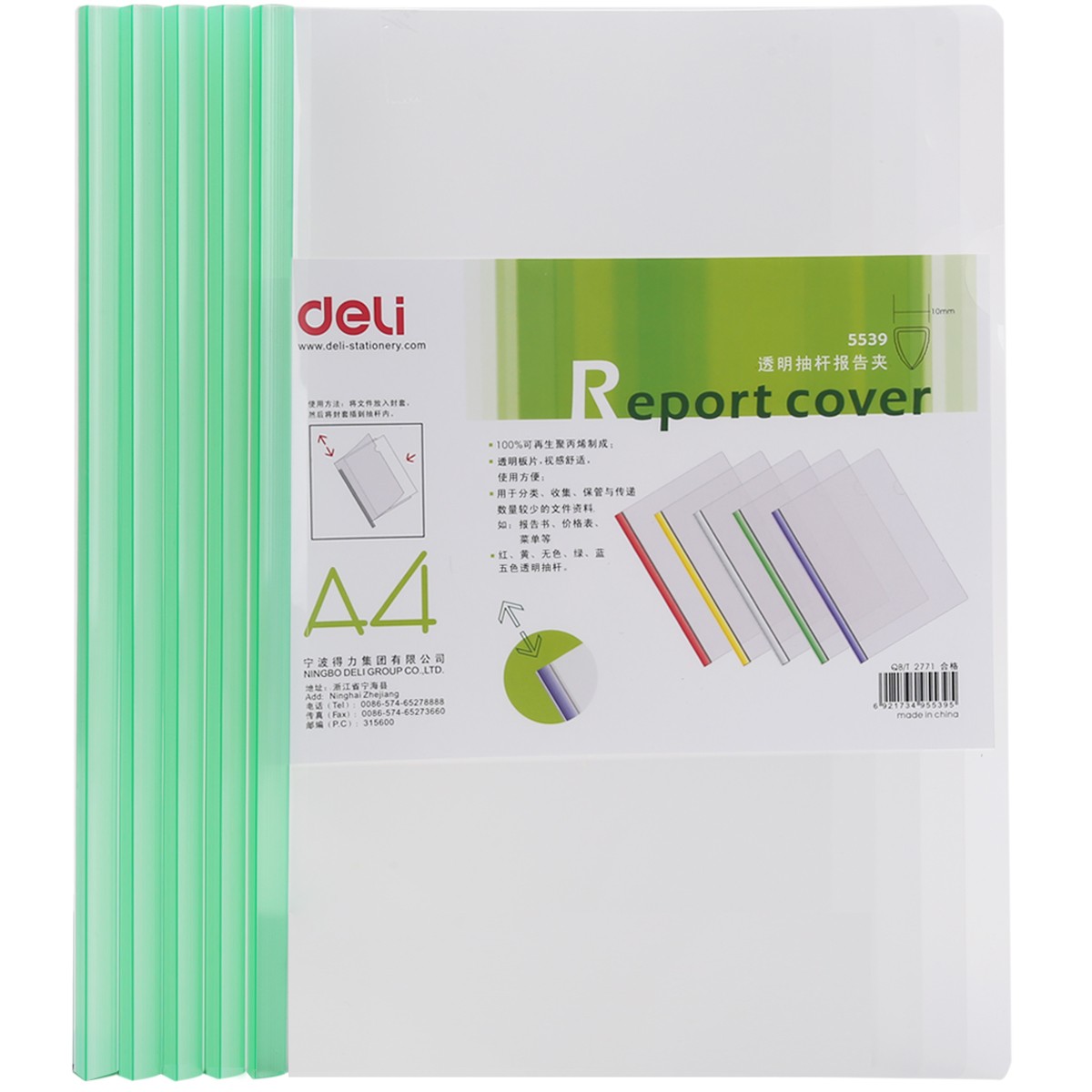 商品名称:得力 办公用品透明抽杆文件夹拉杆夹1cm彩色文件报告夹 5539