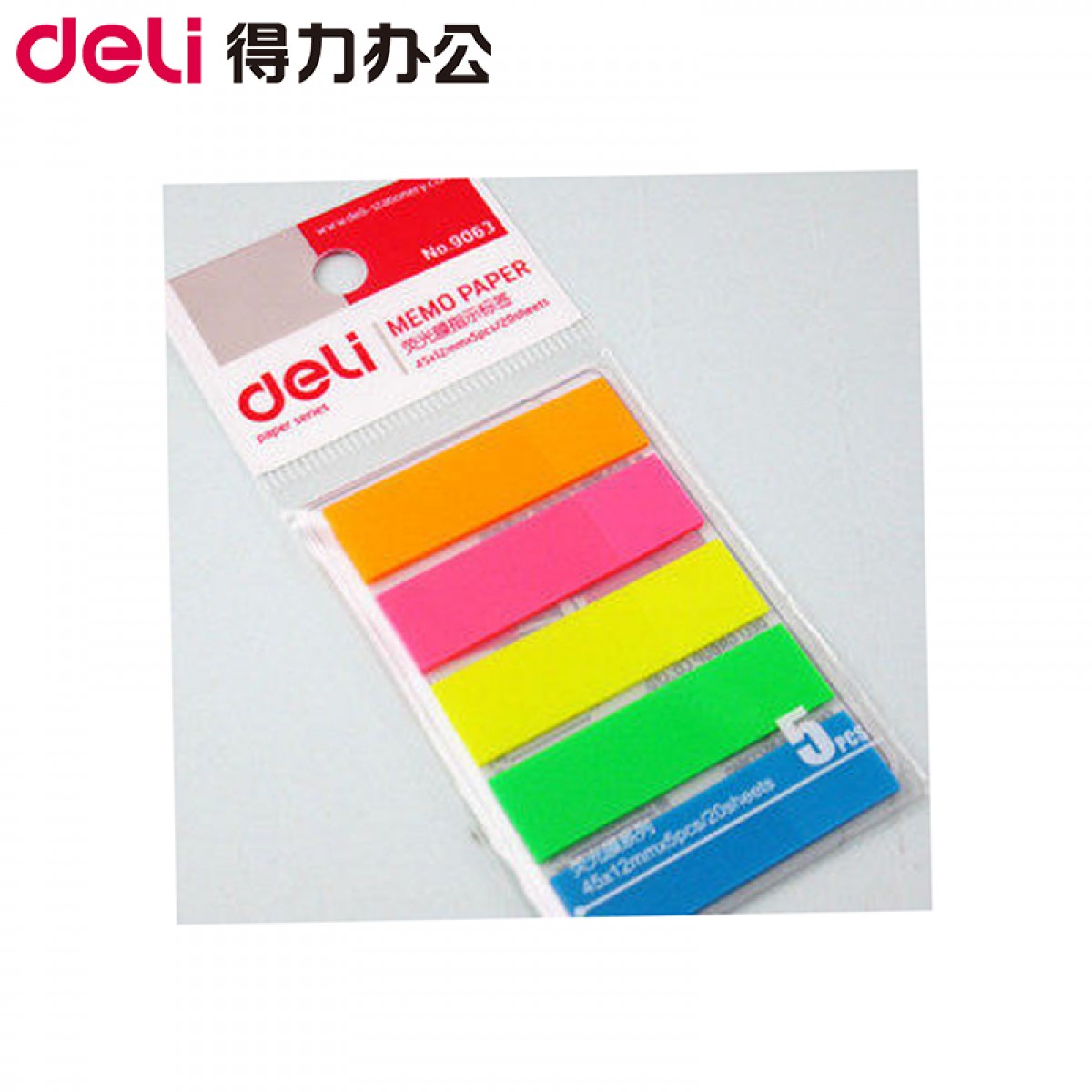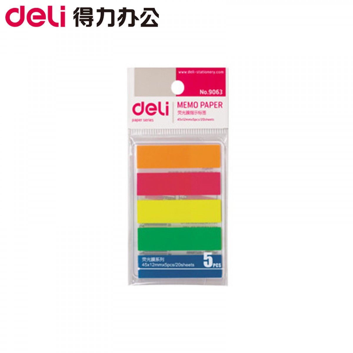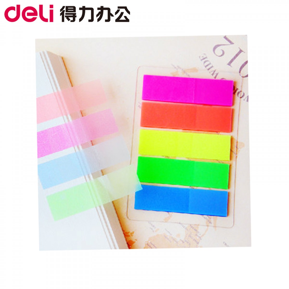 商品名称:得力 百事贴 9063 彩色荧光膜指示标签 分类贴 便利帖