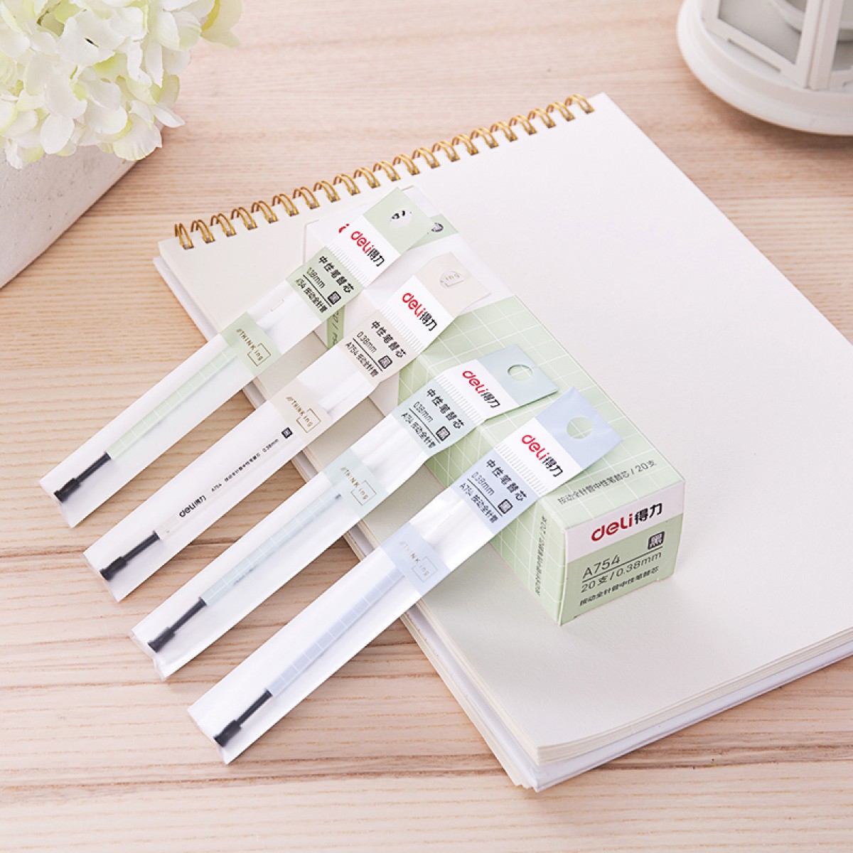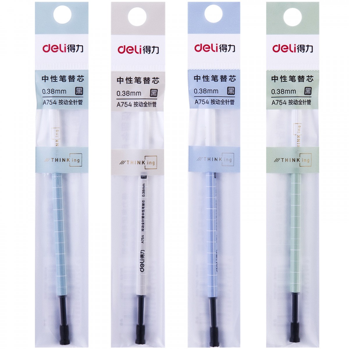 得力 A754中性笔替芯学生用笔水笔按动笔替芯0.5mm全针管