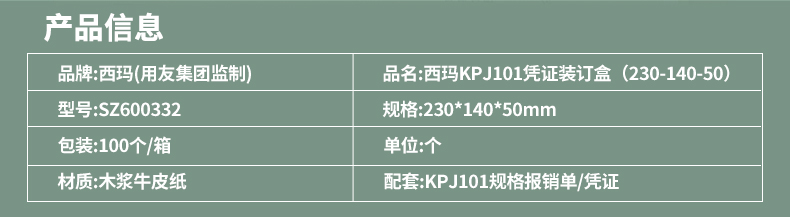 商品名称:西玛 KPJ101配套西玛记账凭证盒230*140*50mm档案装订盒用友软件财务会计用品专用凭证档案盒SZ600332