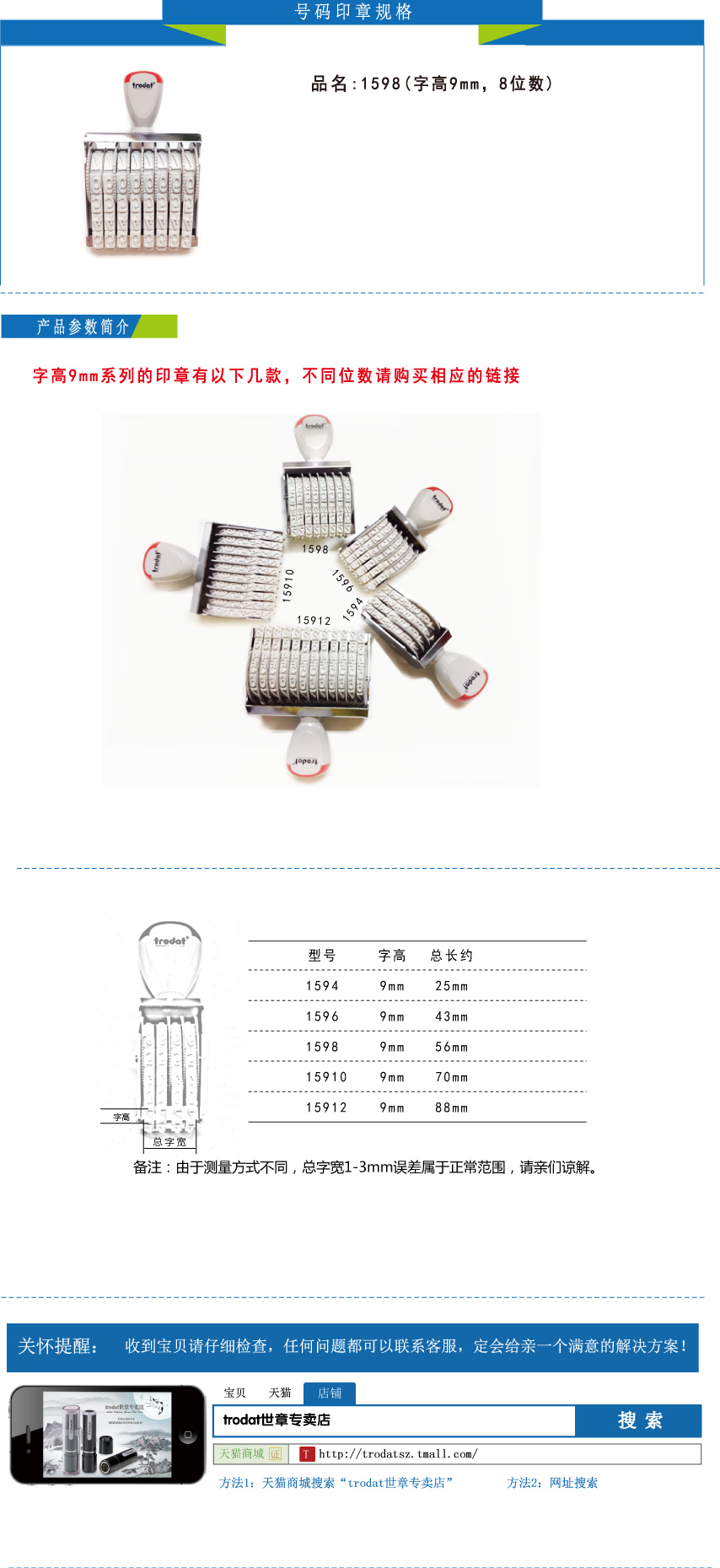 商品名称:Trodat/卓达 1598 字高9mm系列活字数字组合章号码章 转轮印章