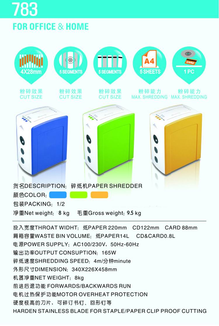 商品名称:杰丽斯 碎纸机 电动立式碎纸机中型 783