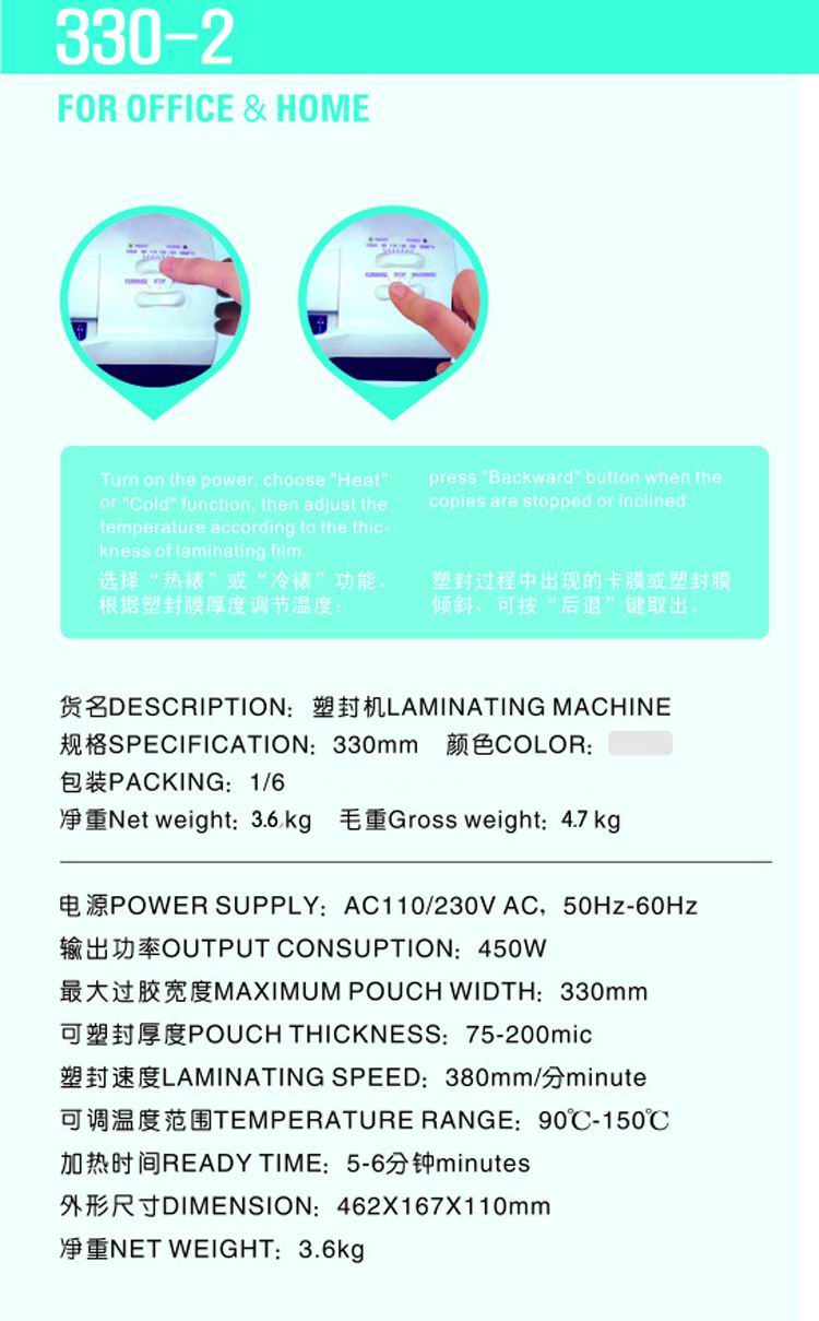 商品名称:杰丽斯 塑封机 A3规格塑封机过塑机 330-2