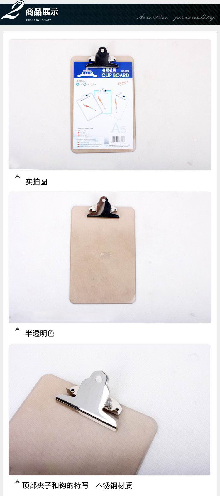 商品名称:杰丽斯 A5透明板夹书写板夹写字板书写板文件夹结账板 803-2