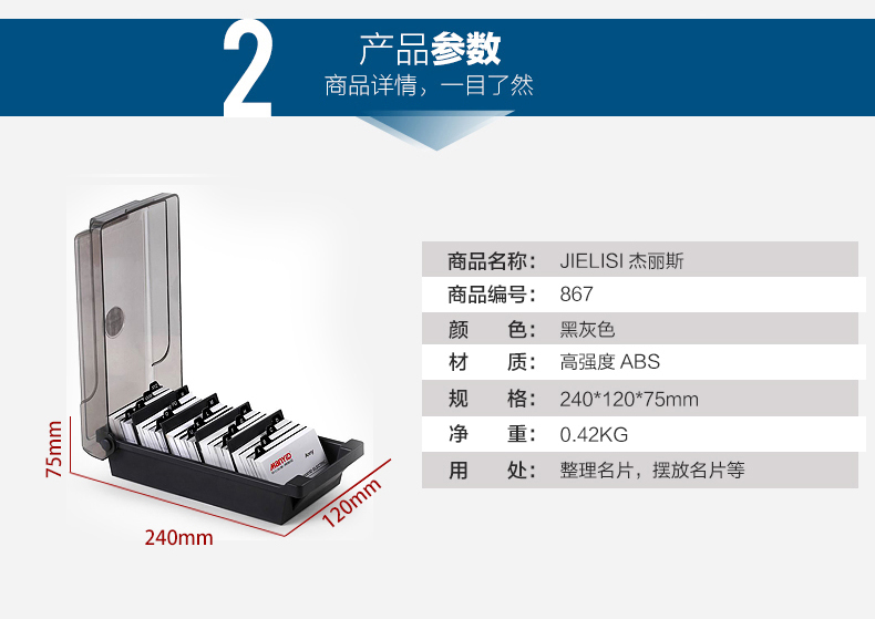 商品名称:杰丽斯 大容量名片盒名片收纳盒批量收纳分类整理名片夹 867