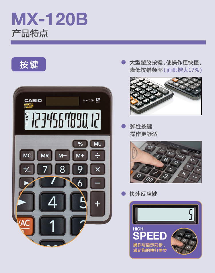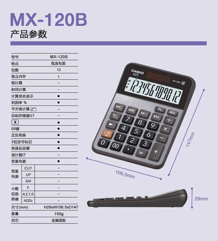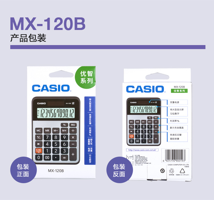 商品名称:CASIO/卡西欧 MX-120B 12位 小型大屏计算器 商务财务办公计算
