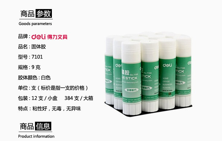 商品介绍:适用于粘贴纸张、卡片等,粘贴方便,牢固清洁。拧出几毫米即可使用,用后盖紧质量优良 粘性好,凝固快,携带方便,不用担心粘手