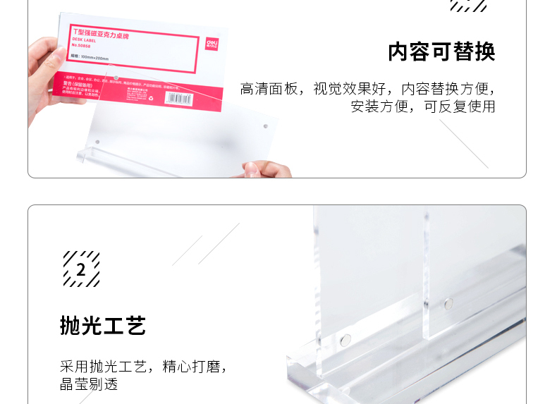 商品名称:得力 亚克力餐牌桌签座位展示牌会议嘉宾台桌牌号台卡台牌名字席卡