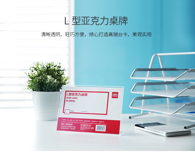 得力 50850台卡A4台牌酒水牌L型广告展示牌透明亚克力桌牌桌面立牌
