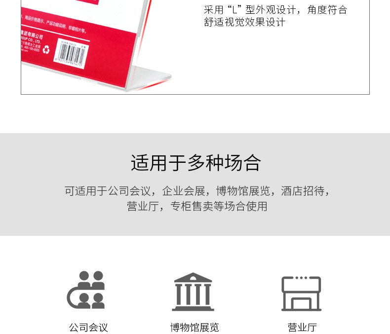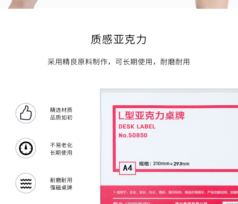 商品名称:得力 50850台卡A4台牌酒水牌L型广告展示牌透明亚克力桌牌桌面立牌