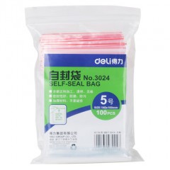 得力 5号自封袋3024 加厚透明塑料袋包装袋 100个/包