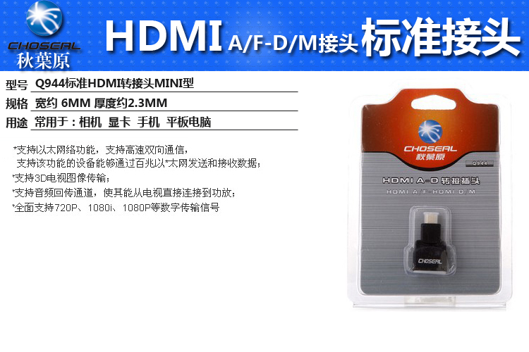 商品名称:秋叶原 微型转标准HDMI Micro转HDMI标准 3D 转接头 Q944
