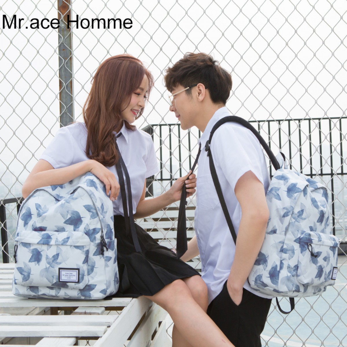Mr.ace Homme新款双肩包学生时尚背包简约大容量书包可爱女包男包