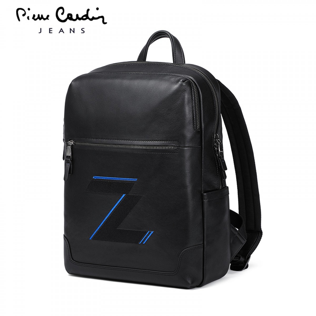 皮尔卡丹 真皮双肩包男 张亮联名同款男士背包 绣花背包男 双肩包