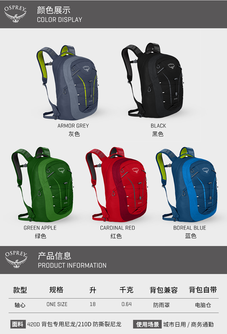 商品名称:OSPREYAxis 轴心 18升城市背包笔记本电脑双肩包15.6寸电脑背包