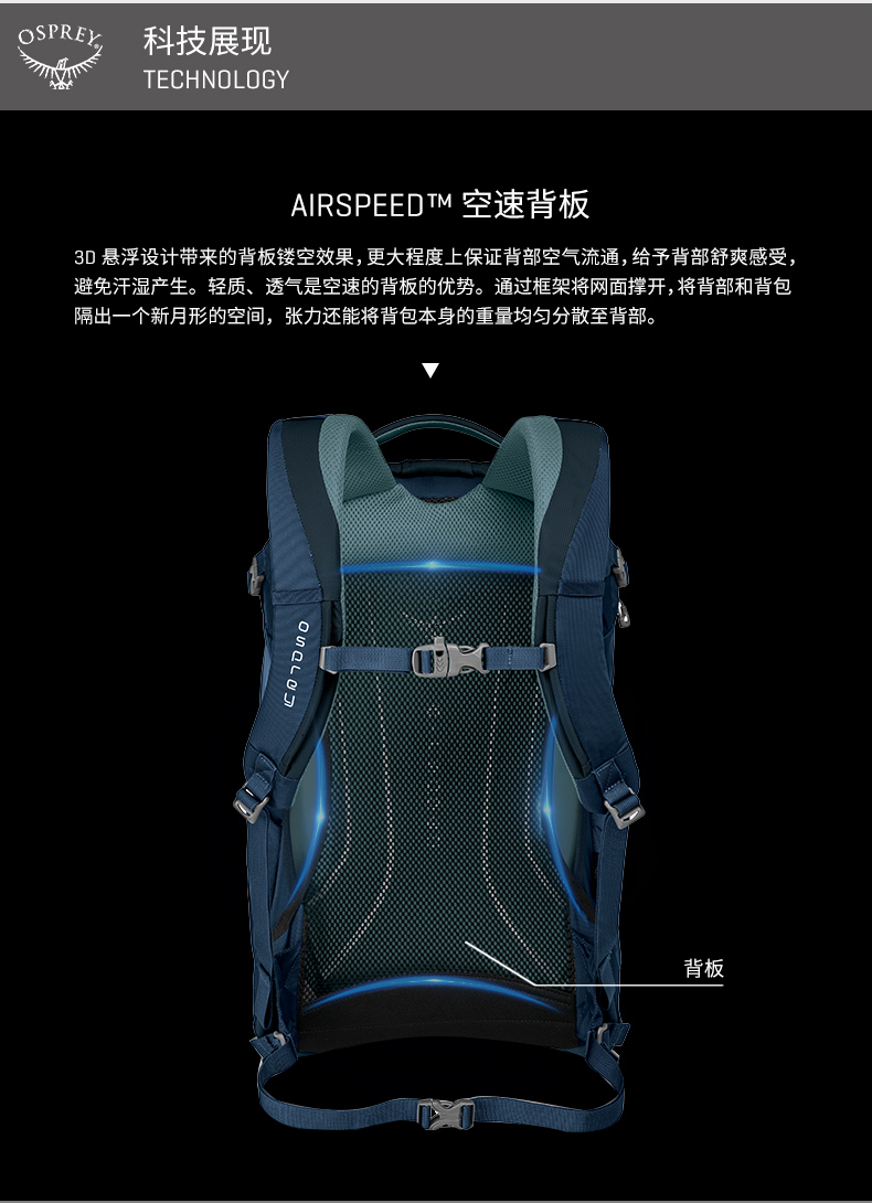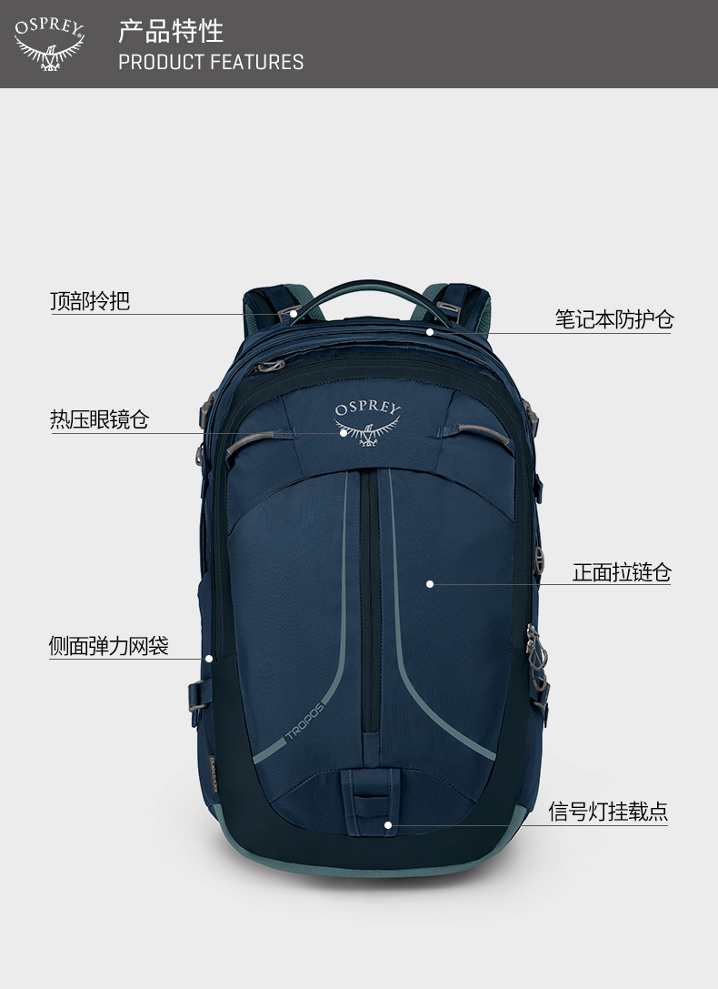商品名称:Osprey Tropos 对流32L 笔记本电脑包男时尚休闲防泼水双肩包男