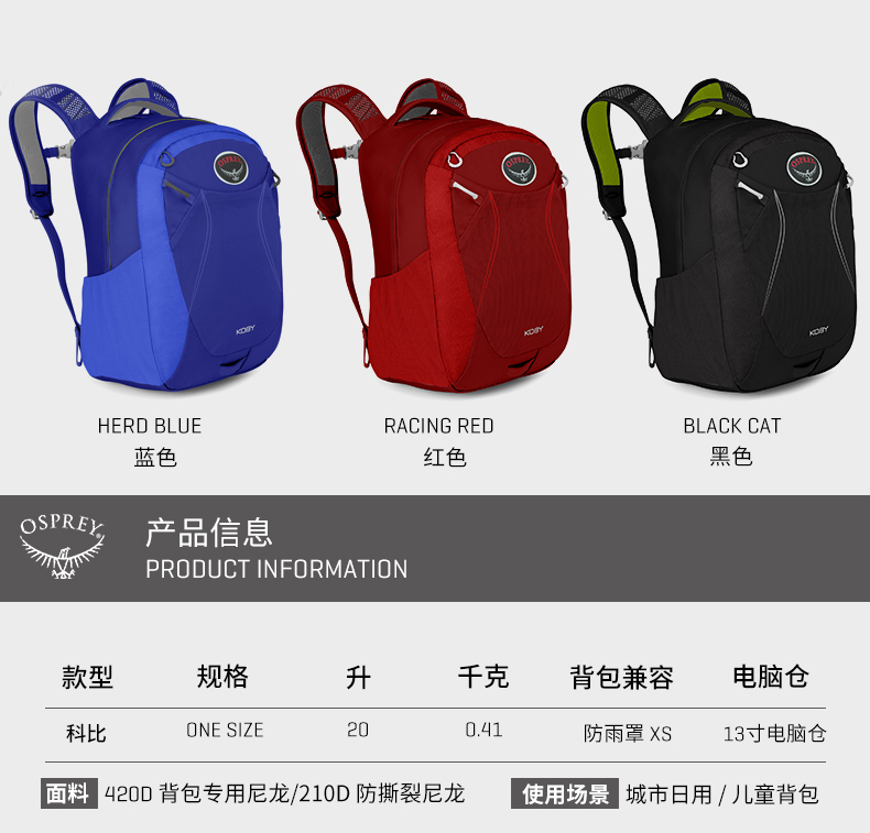 商品名称:OSPREY Koby 科比 20升 城市日用时尚双肩包笔记本电脑包