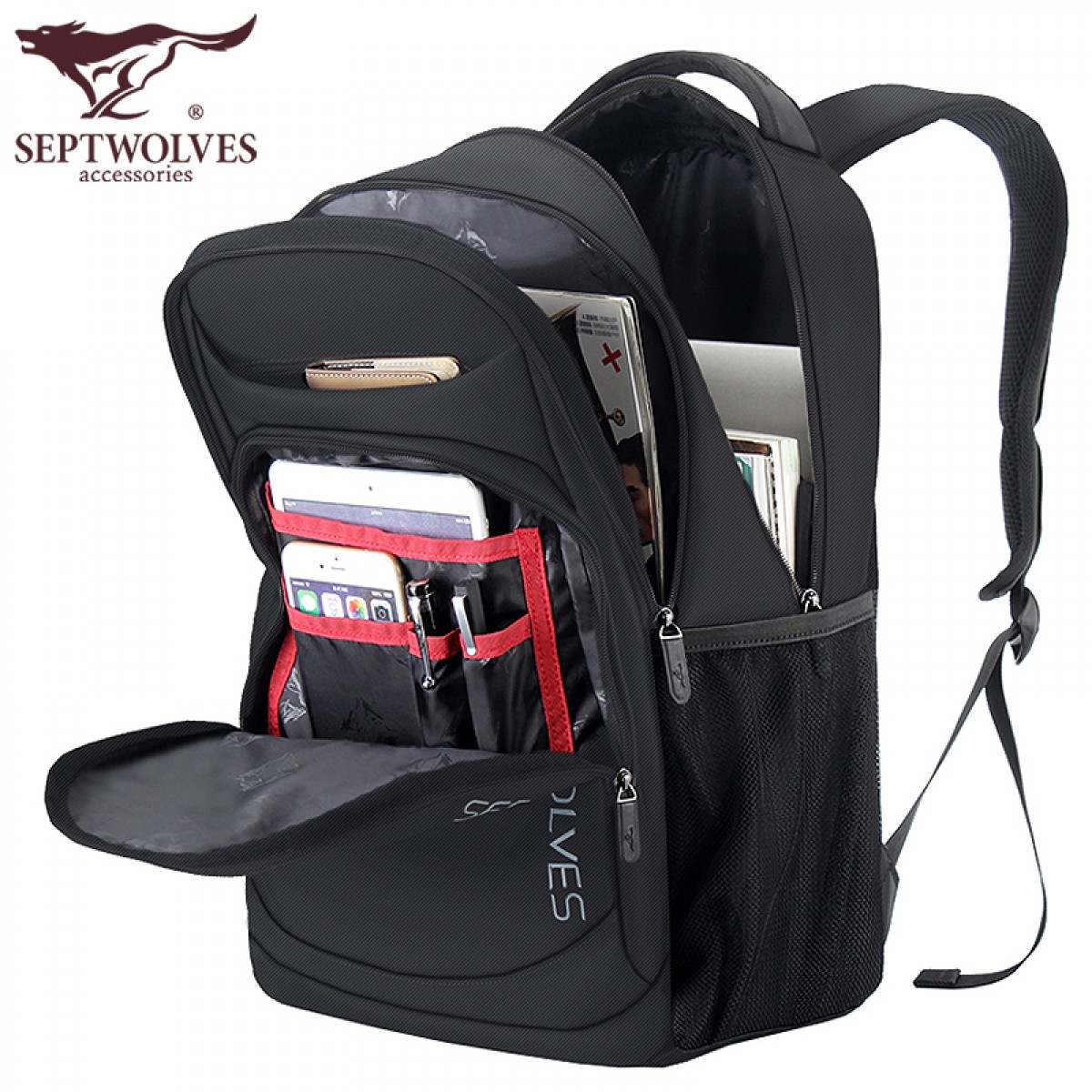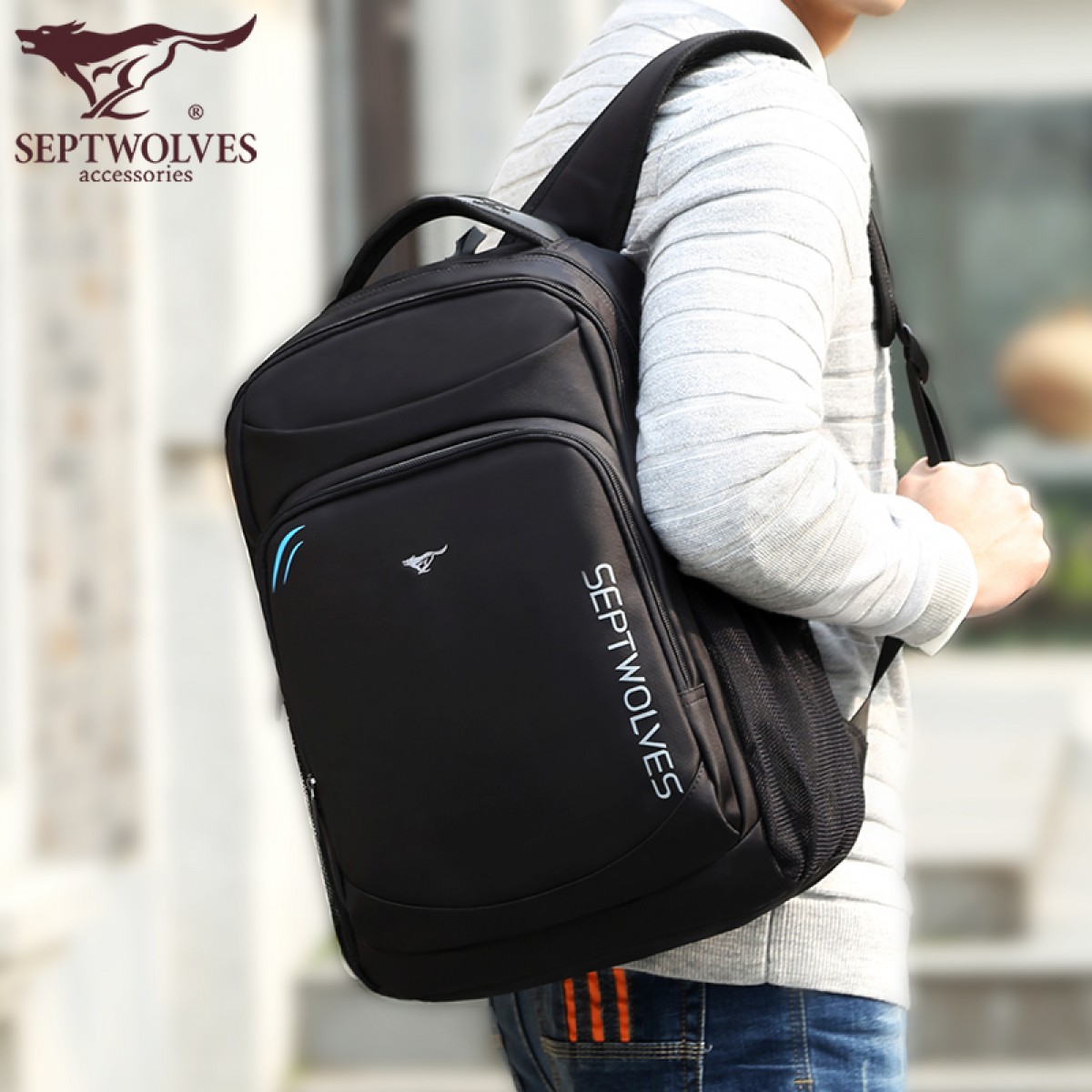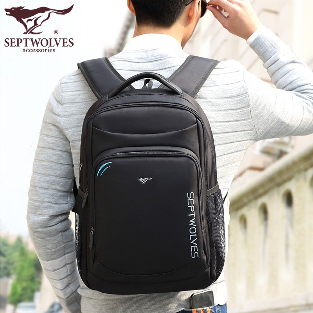 商品名称:七匹狼 背包男 双肩包男士商务旅行电脑包大容量女休闲中学生书包