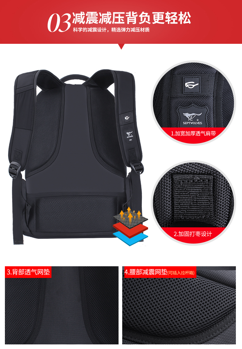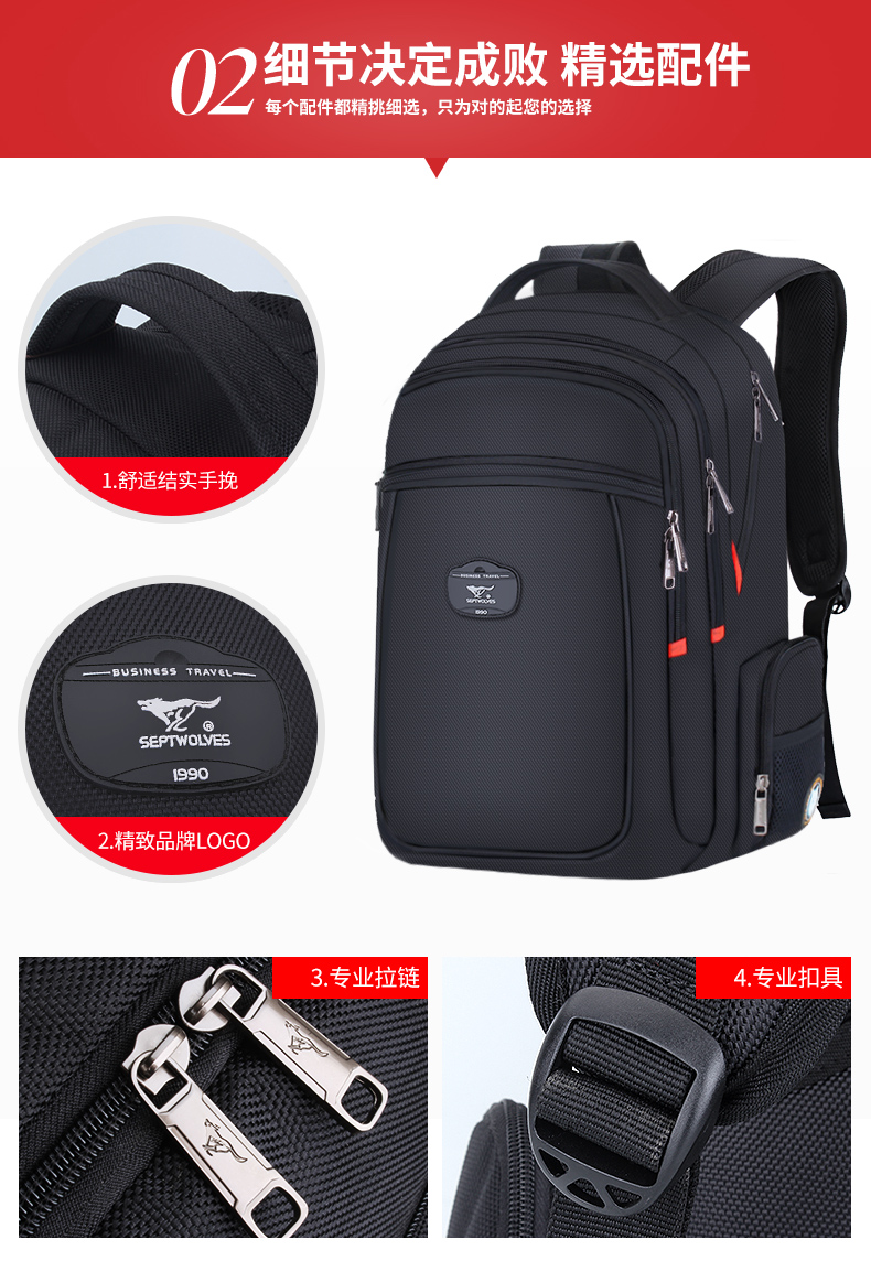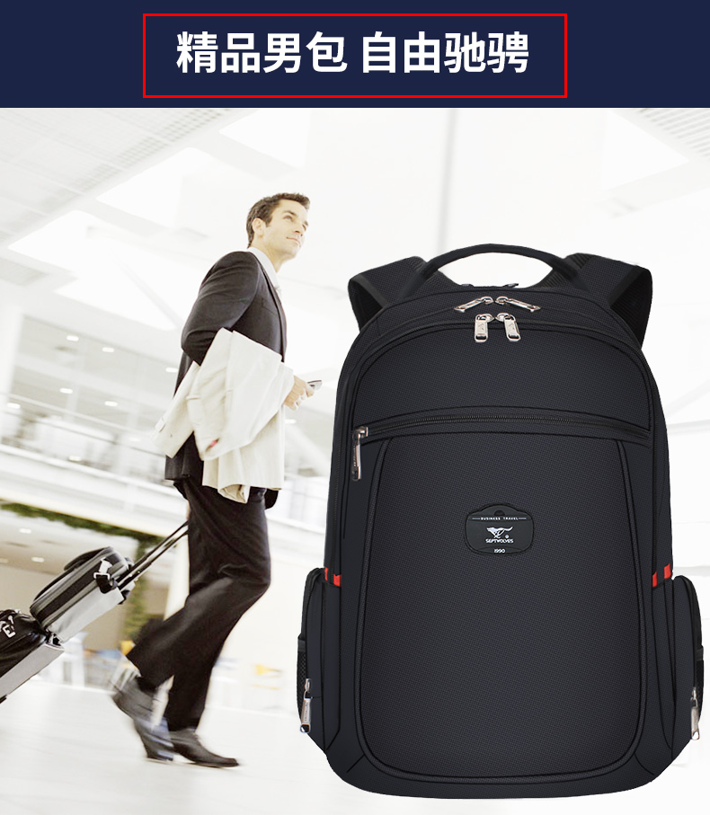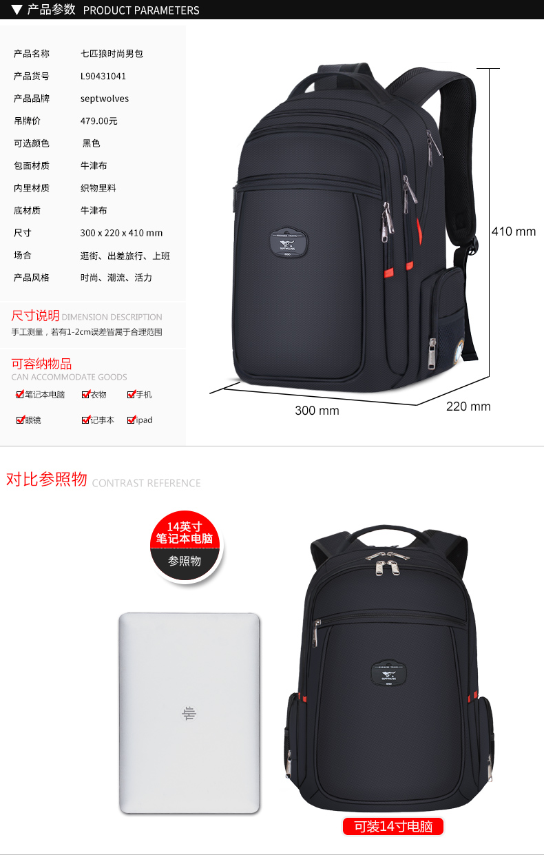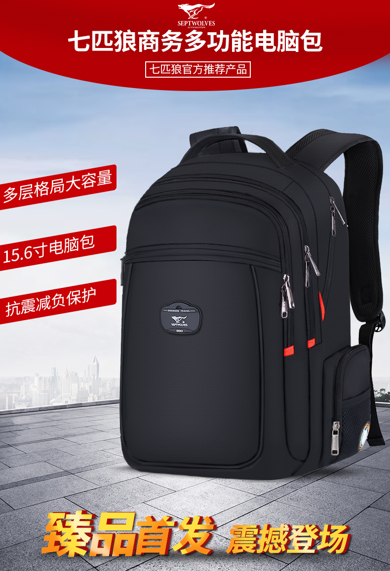商品名称:七匹狼时尚休闲双肩包男 多功能出差旅行背包大容量电脑包商务