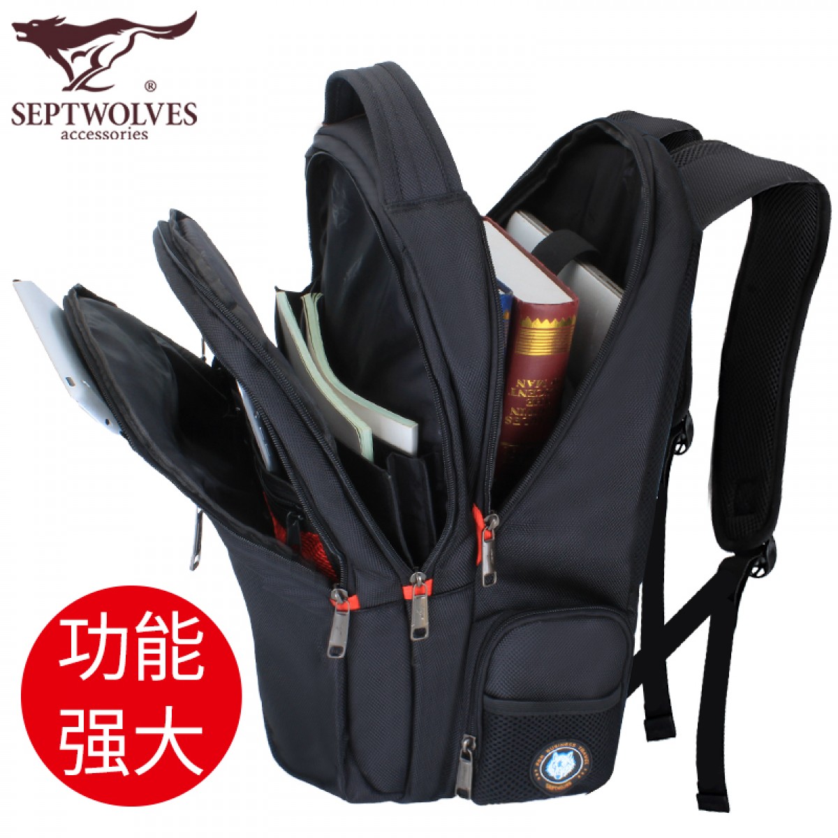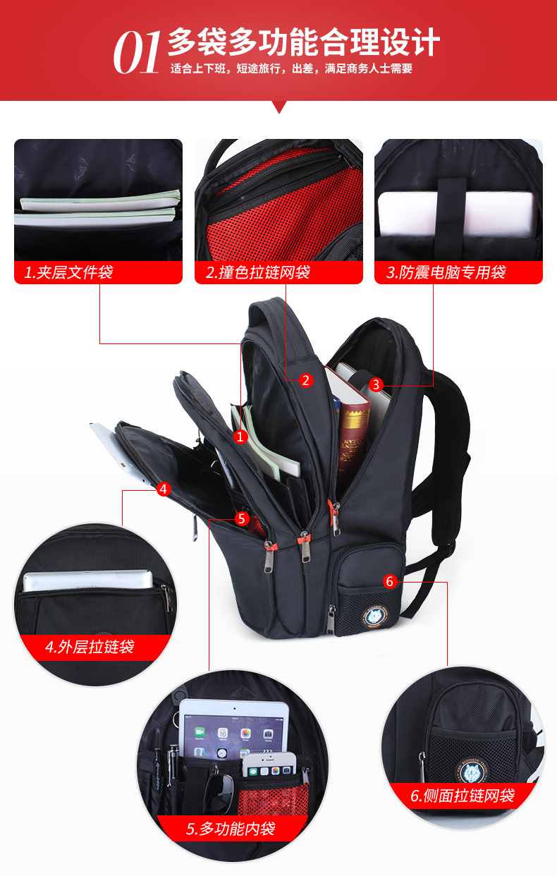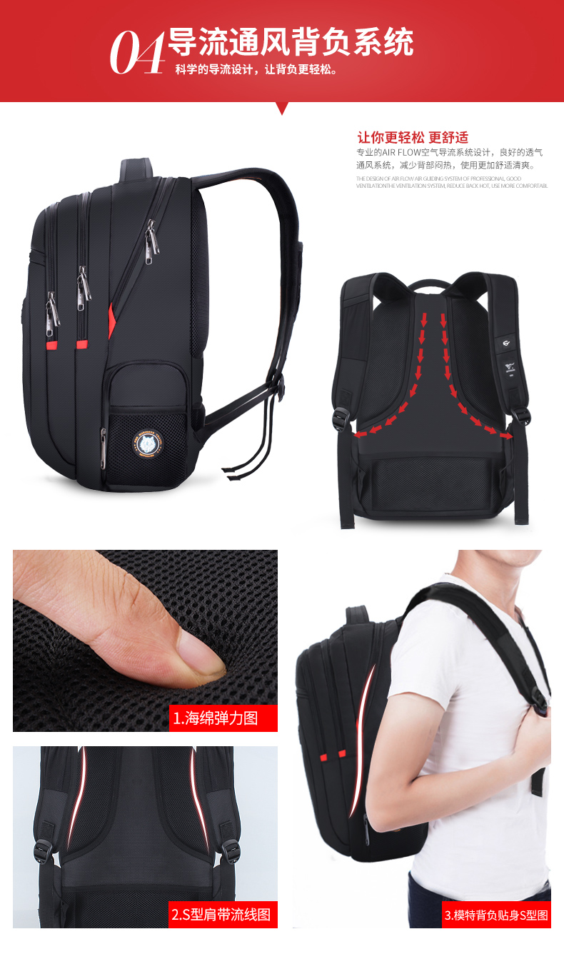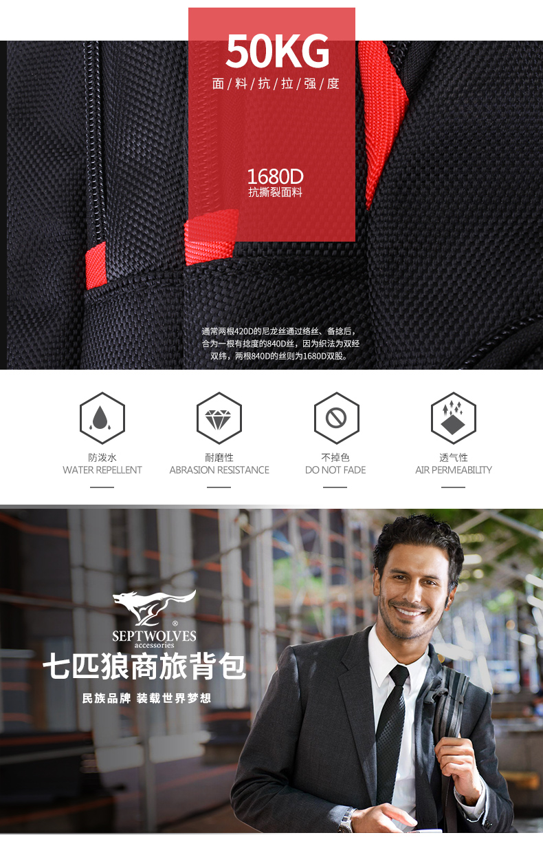 商品名称:七匹狼时尚休闲双肩包男 多功能出差旅行背包大容量电脑包商务