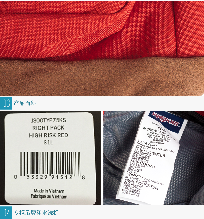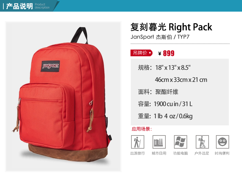 商品名称:JanSport/杰斯伯 双肩包男女电脑包书包皮革底 TYP7 5KS