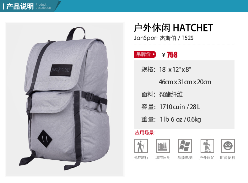 商品名称:JanSport/杰斯伯 杰斯伯户外男女双肩背包电脑包书包登山包 T52S 3F6