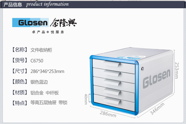 商品名称:金隆兴 桌面带锁文件柜A4资料收纳柜抽屉式