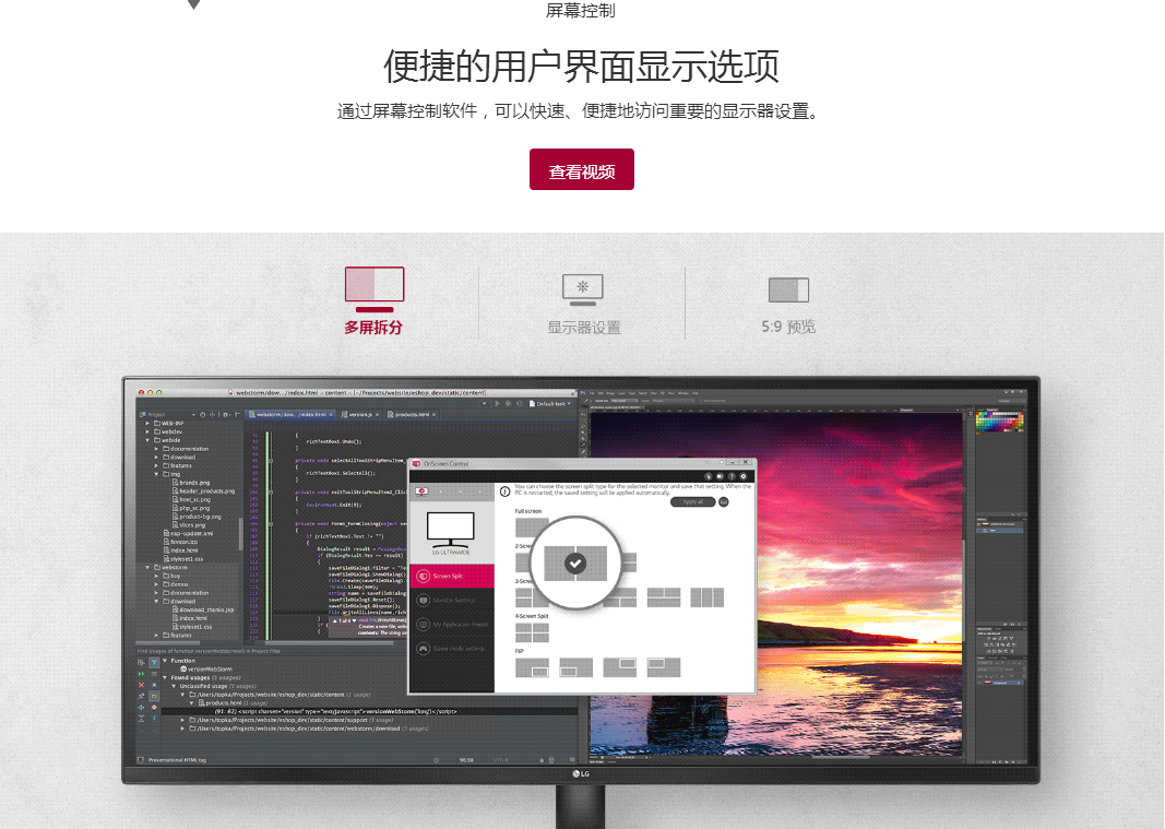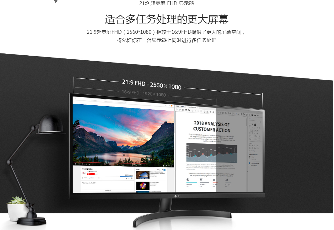 商品名称:LG 34寸准2K高清IPS显示器21:9 可分屏挂墙 34WK500-P