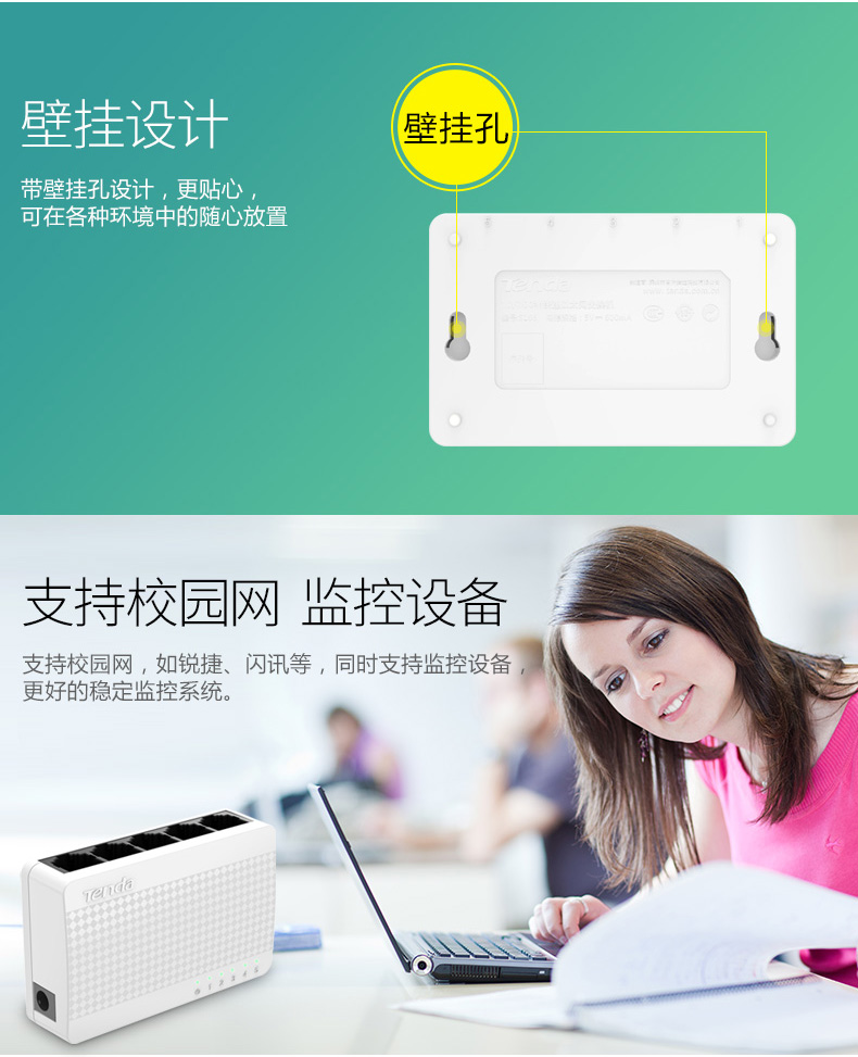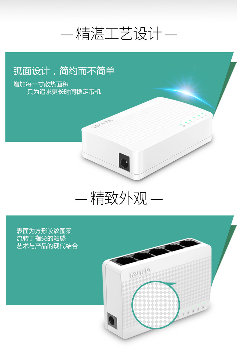 商品名称:Tenda/腾达 S105百兆家用交换机4口监控交换器网线分线器