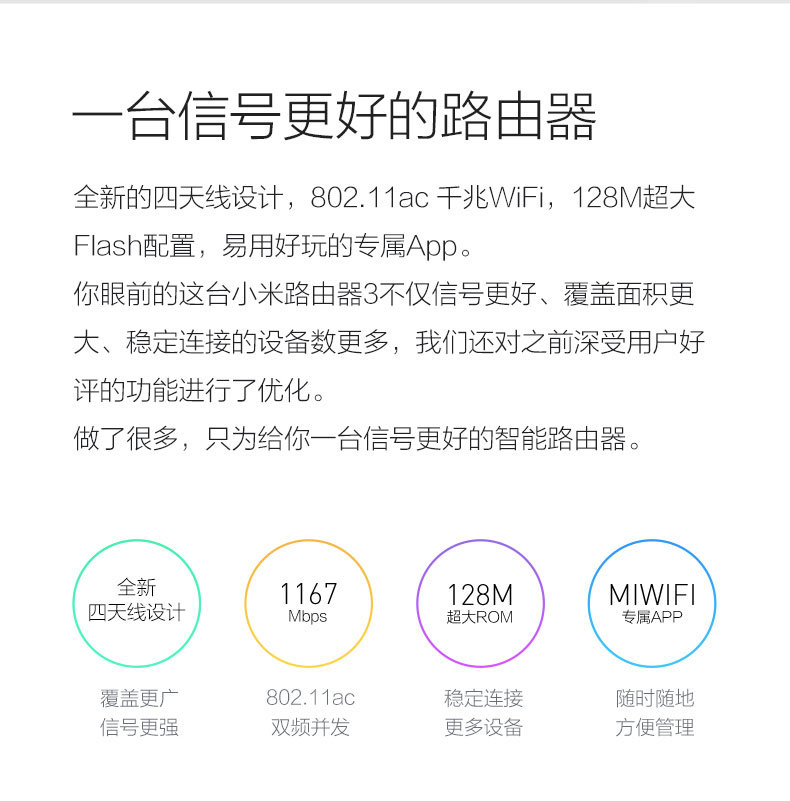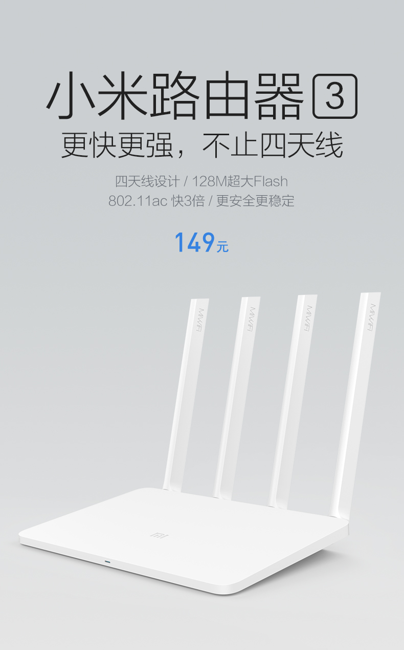 商品名称:小米 路由器3无线wifi智能5G双频稳定穿墙家用高速宽带路由器