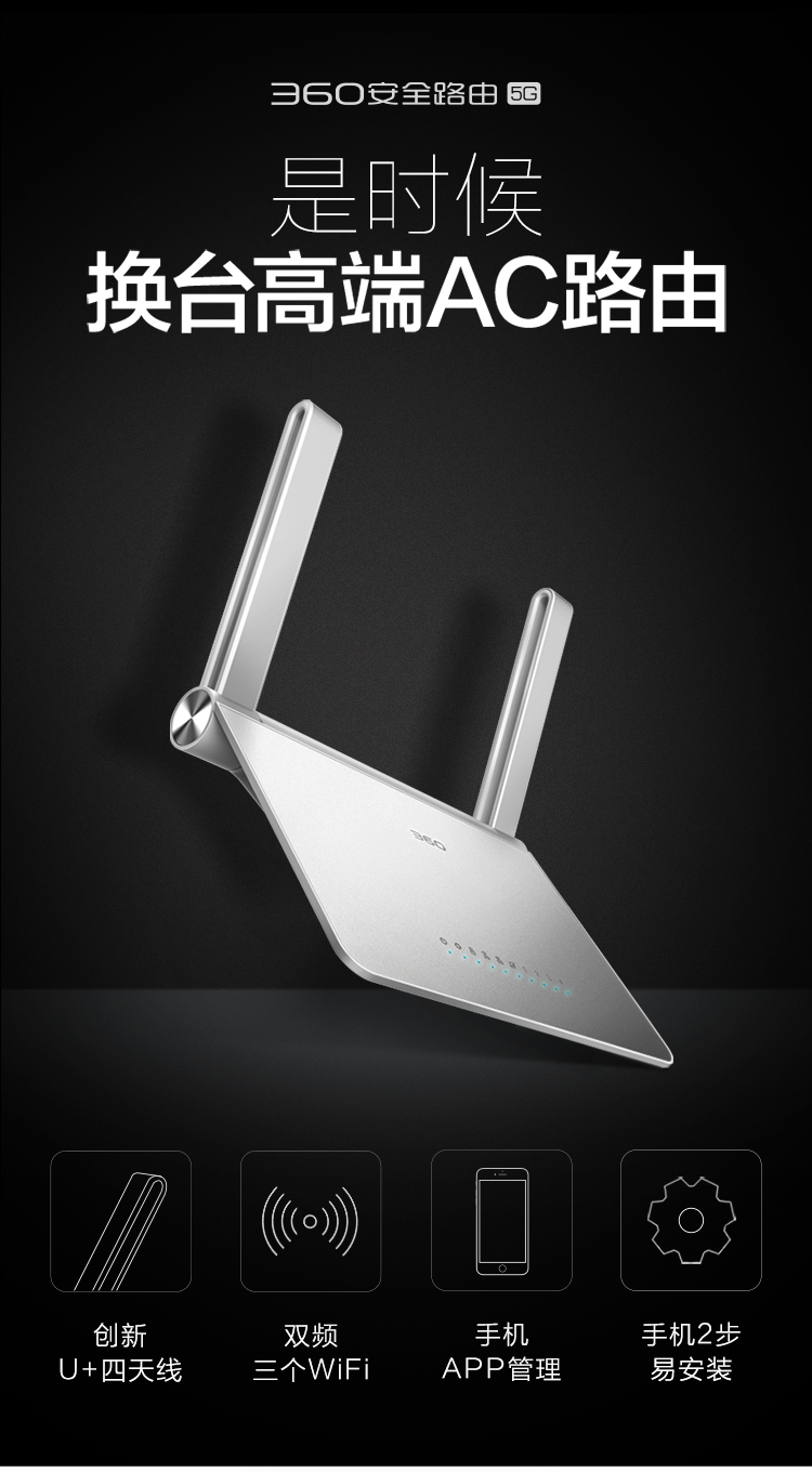 360安全 路由器p2双频1200M无线穿墙王光纤家用高速wifi穿墙