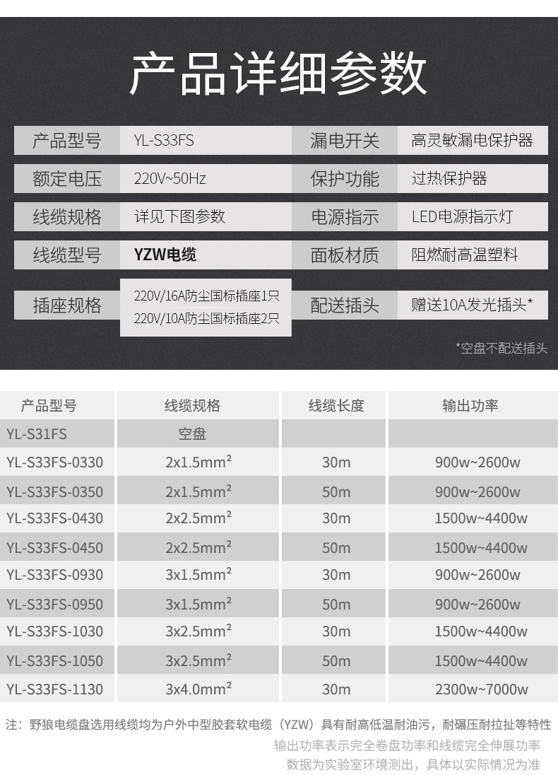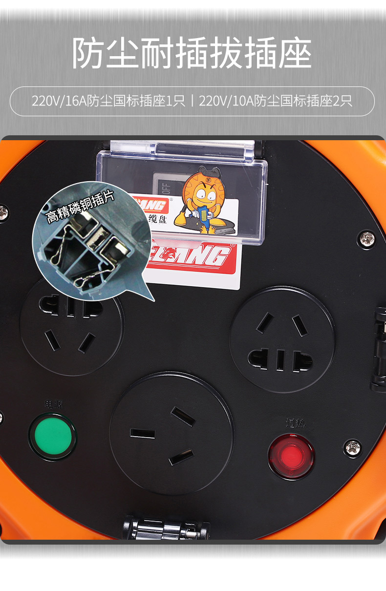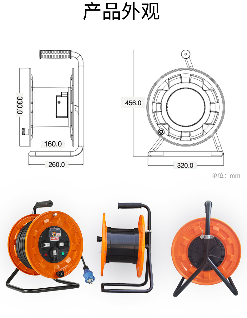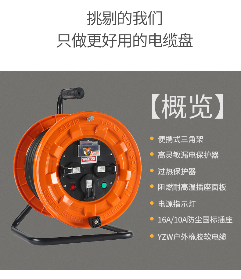 商品名称:野狼 YL-S33FS三角架移动电缆盘电缆卷盘防尘防异物带漏电卷线盘10