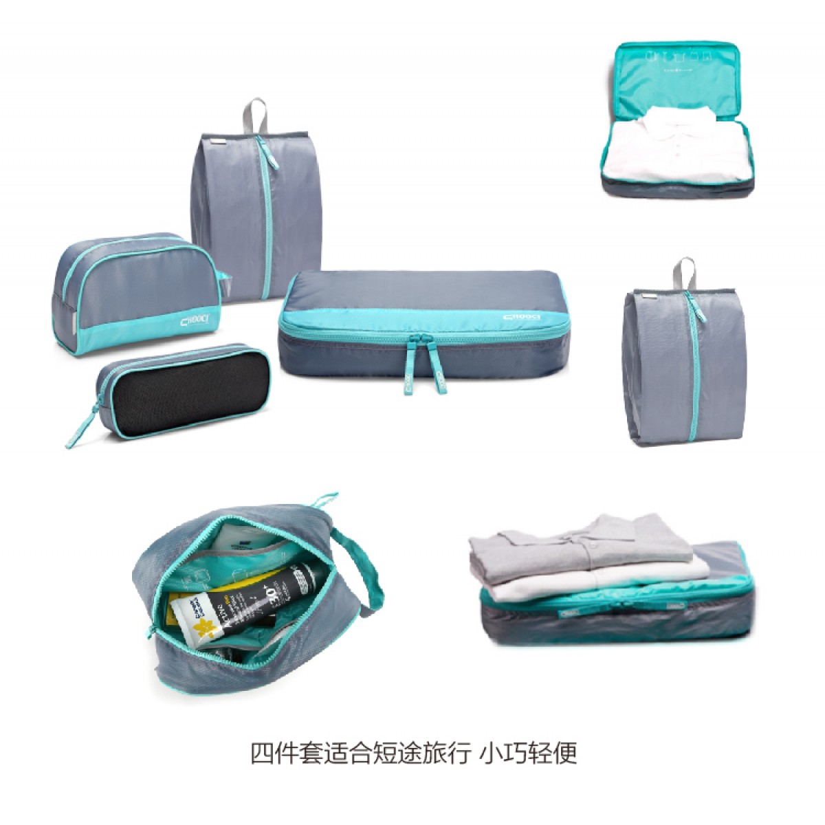 CHOOCI 旅行收纳4件套防水行李箱衣物袋洗漱包整理包