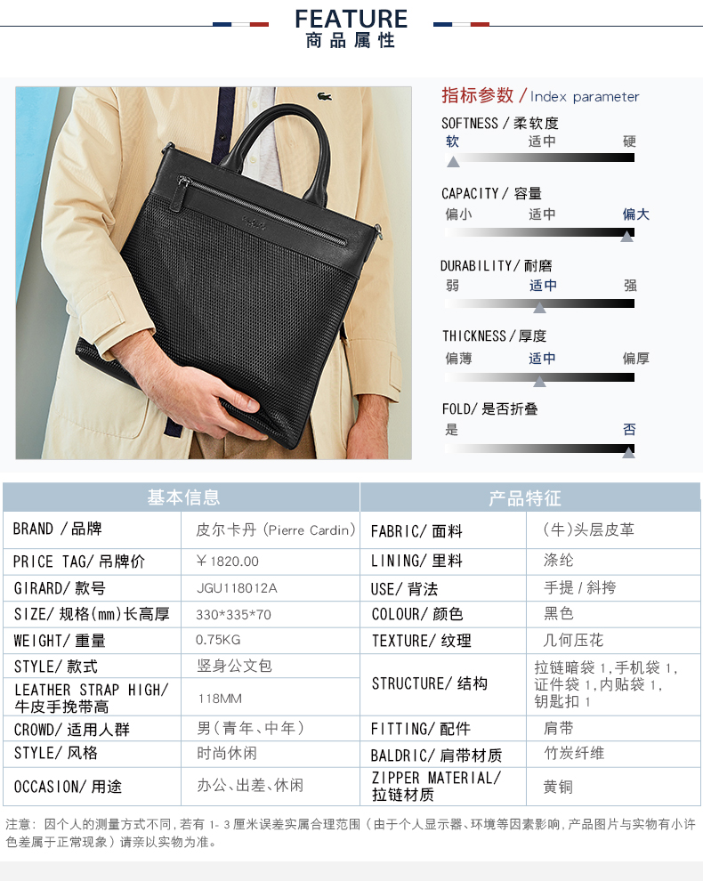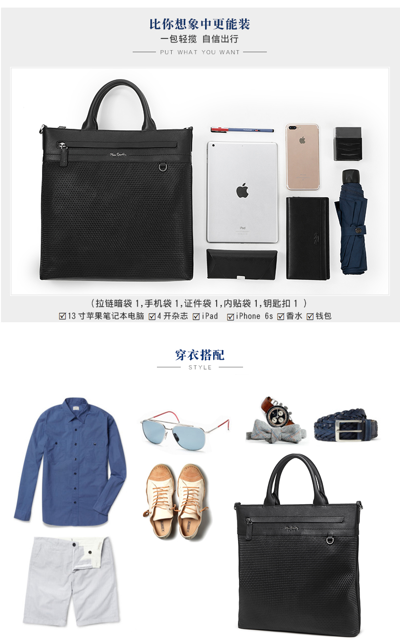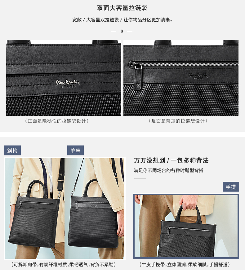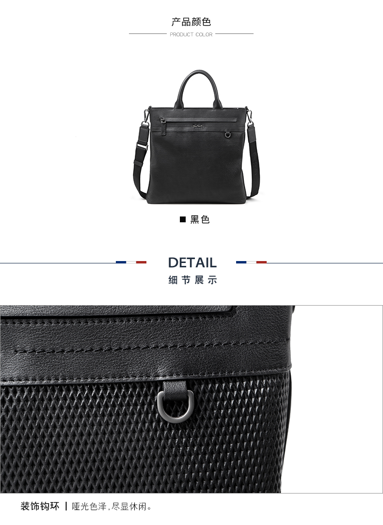 商品名称:皮尔卡丹 头层牛皮手提包竖款单肩包斜挎包 JGU118012A