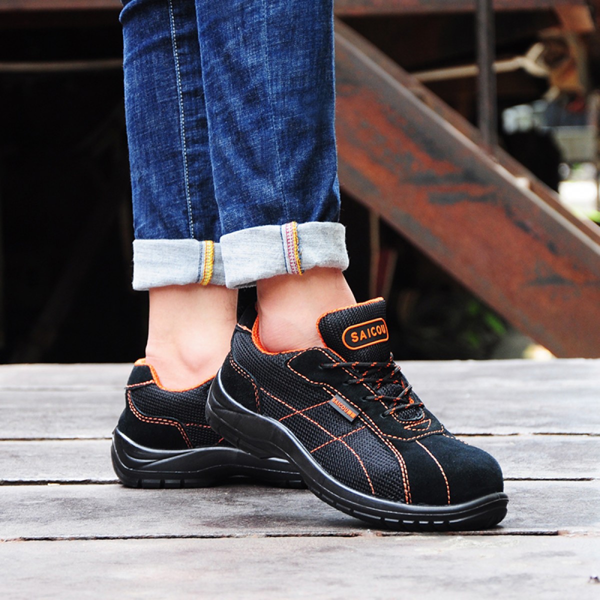 赛固 夏季透气休闲真皮劳保鞋男士防砸防刺穿钢包头耐用安全鞋