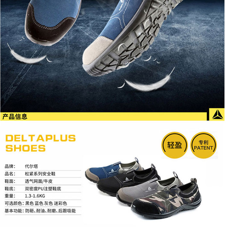 商品名称:代尔塔 钢包头安全鞋劳保鞋男女秋季透气防臭工作鞋防砸防刺穿轻便