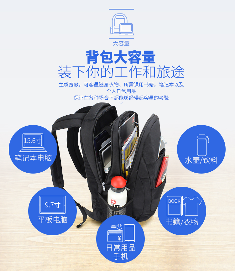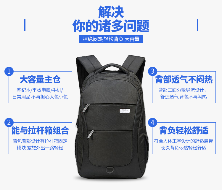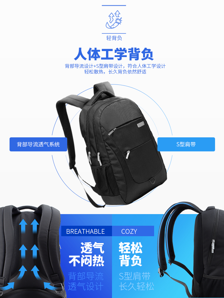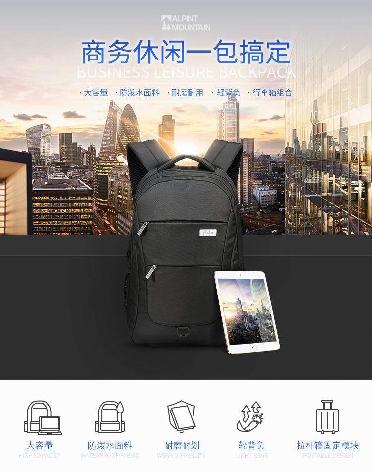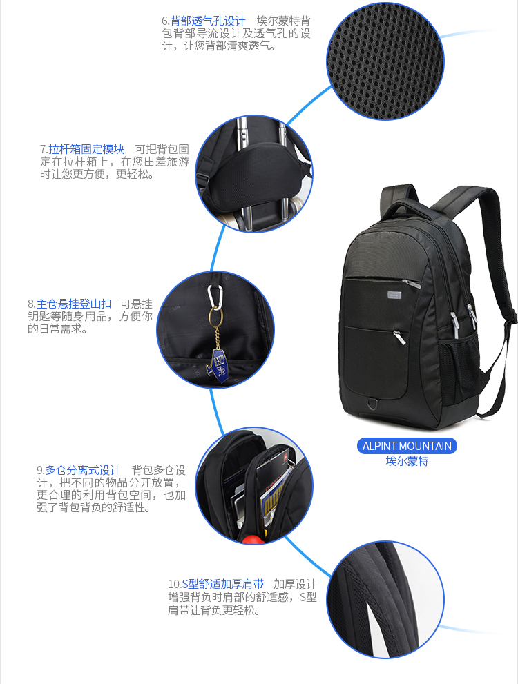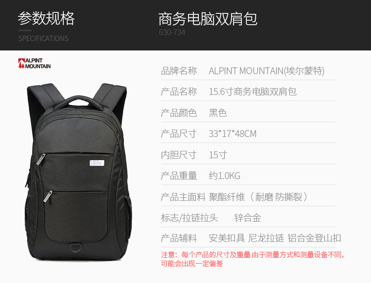 商品名称:埃尔蒙特 双肩电脑包防泼水轻便户外 630-734
