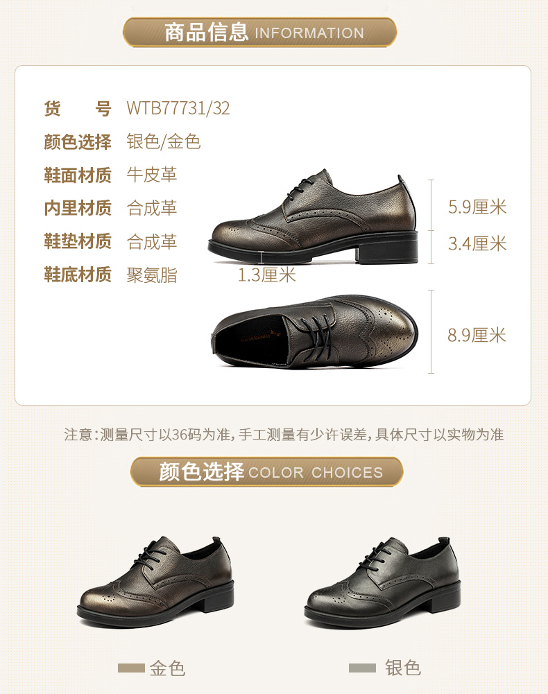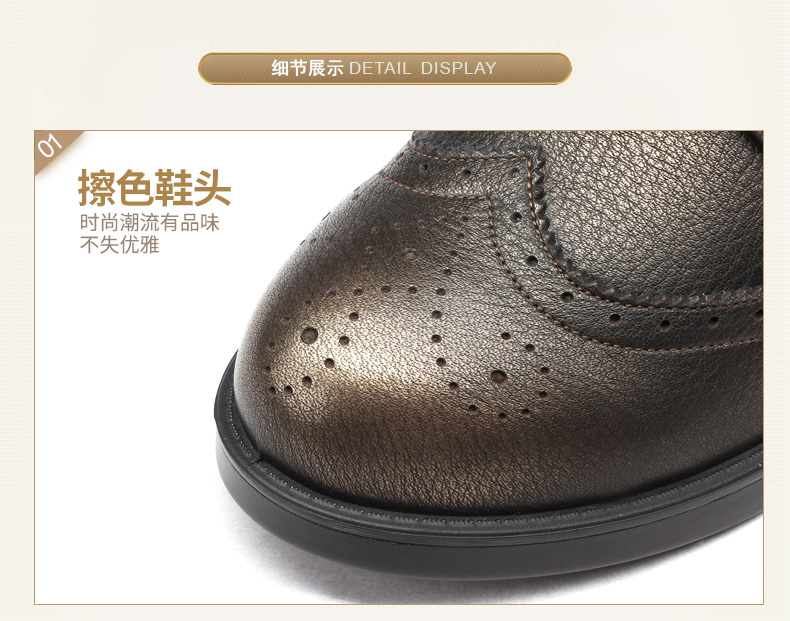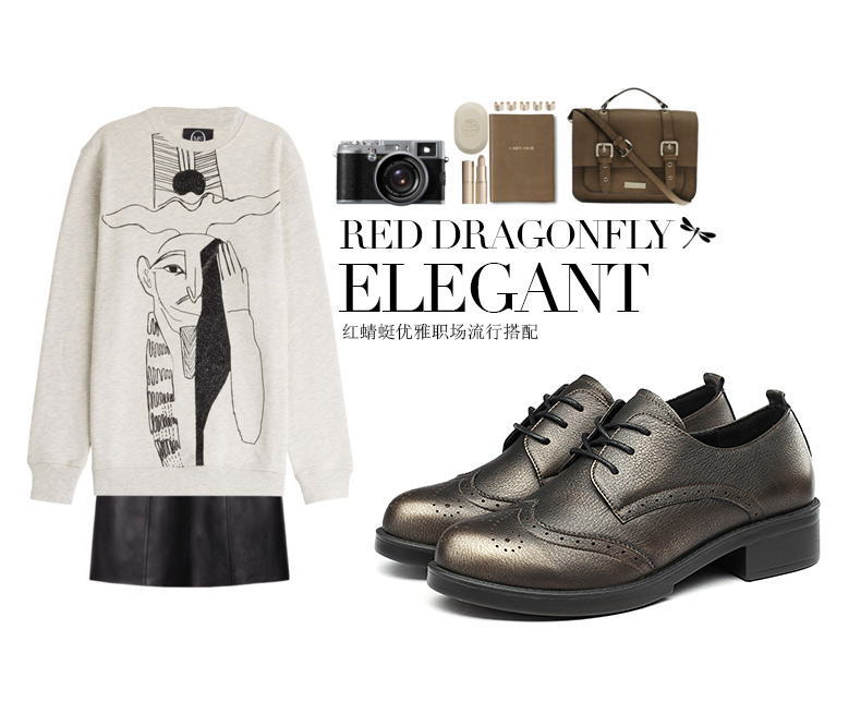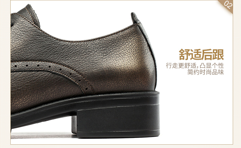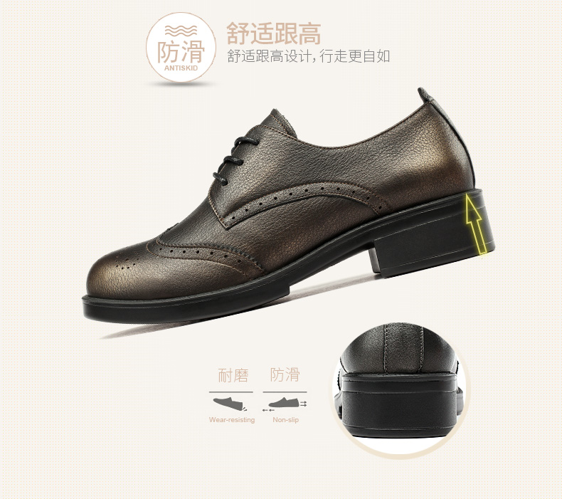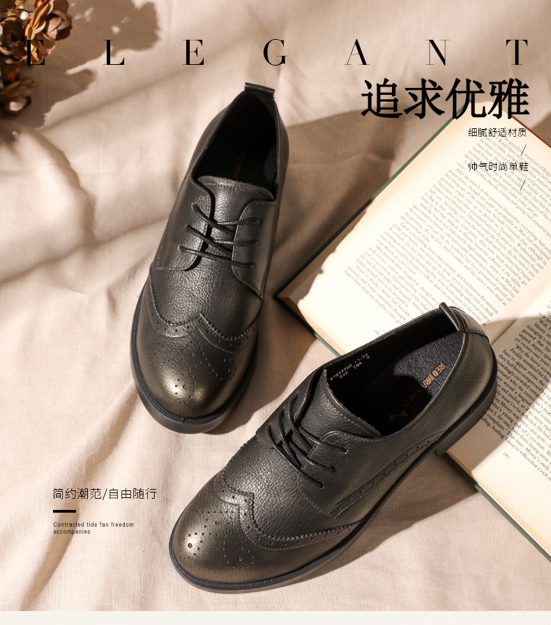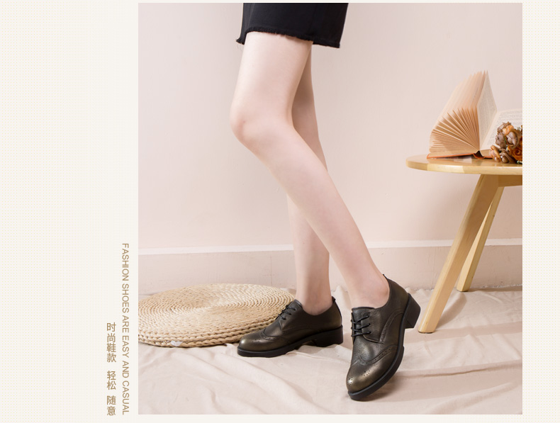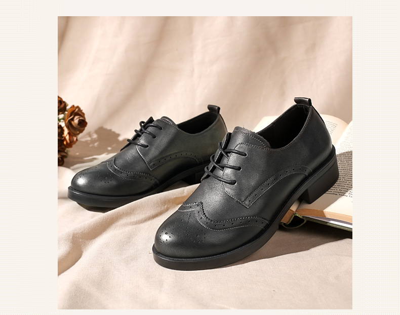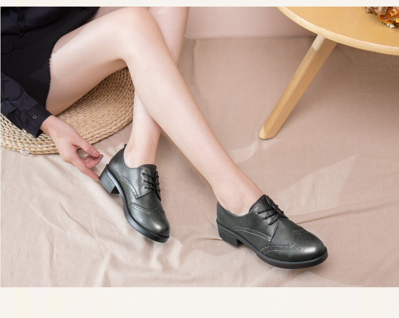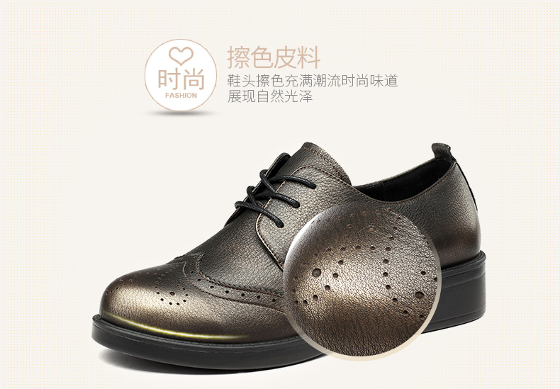 商品名称:红蜻蜓 真皮女单鞋春秋布洛克休闲粗跟女鞋皮鞋