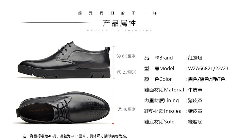 商品名称:红蜻蜓 秋季新款时尚男士商务休闲鞋子系带耐磨皮鞋