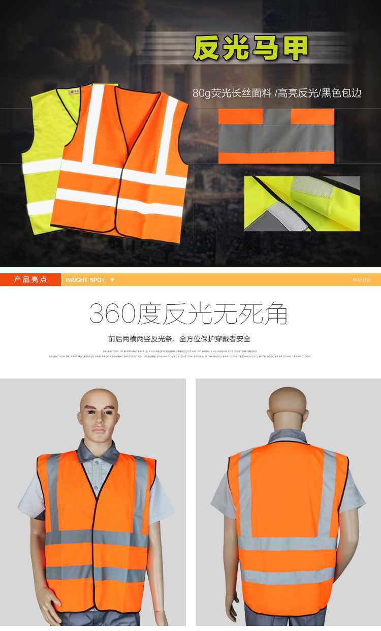 商品名称:谋福 安全反光背心 道路施工夜间作业反光服 户外环卫施工作工作