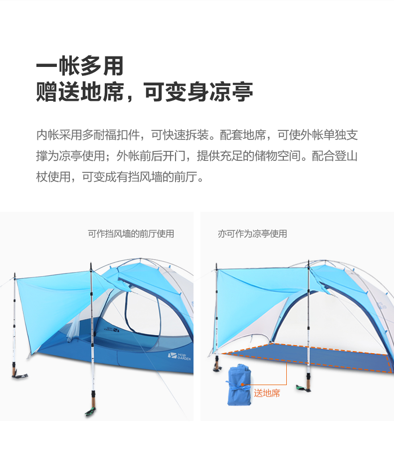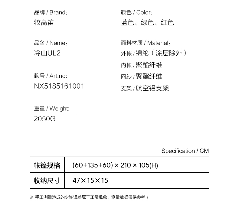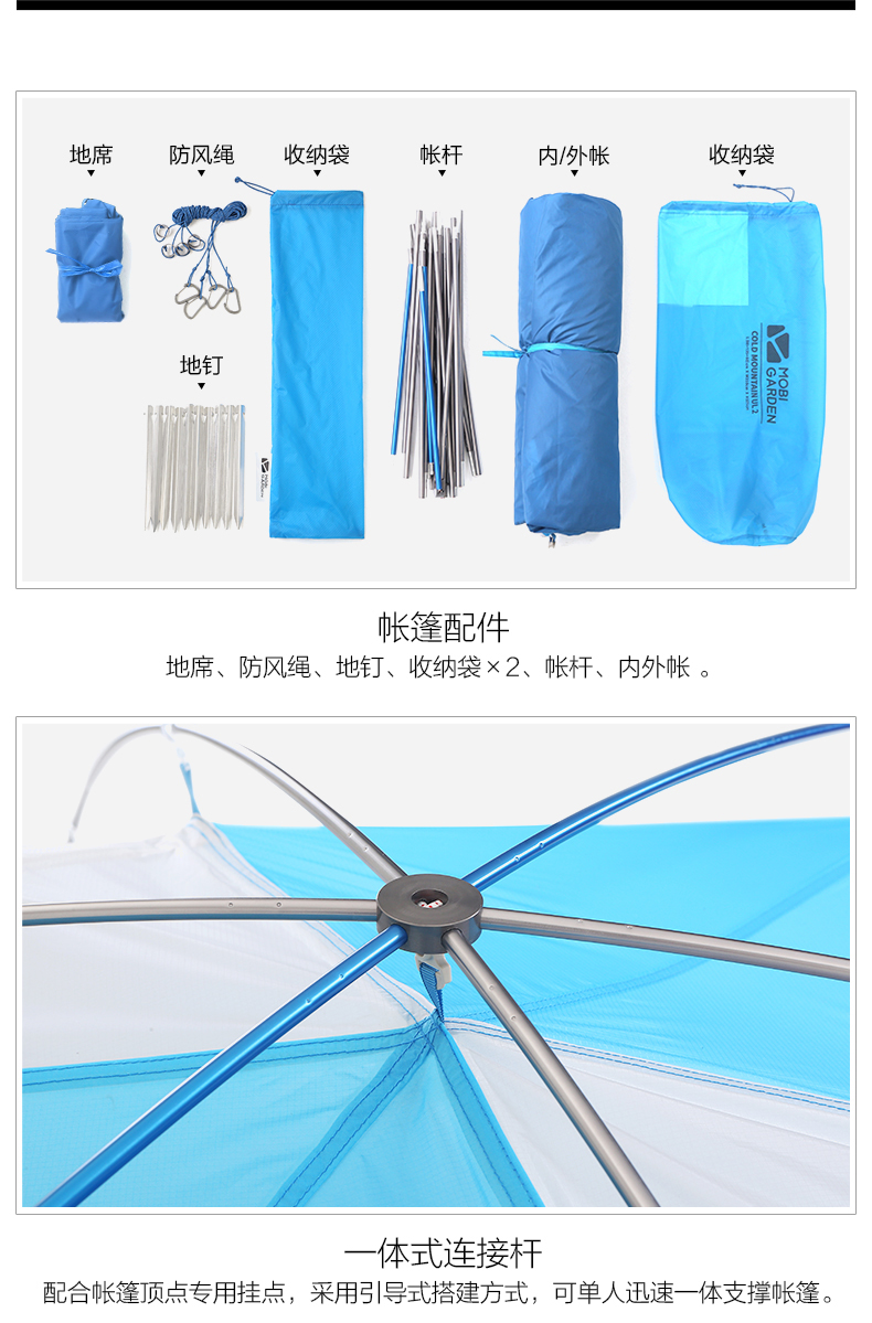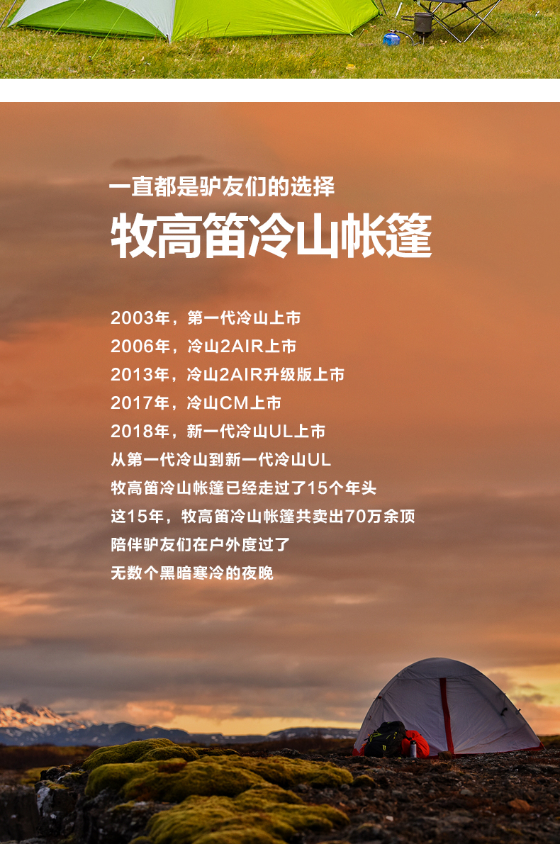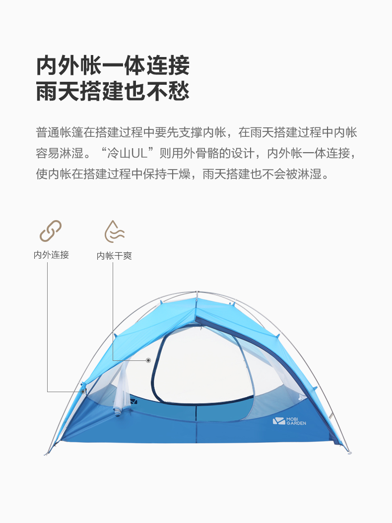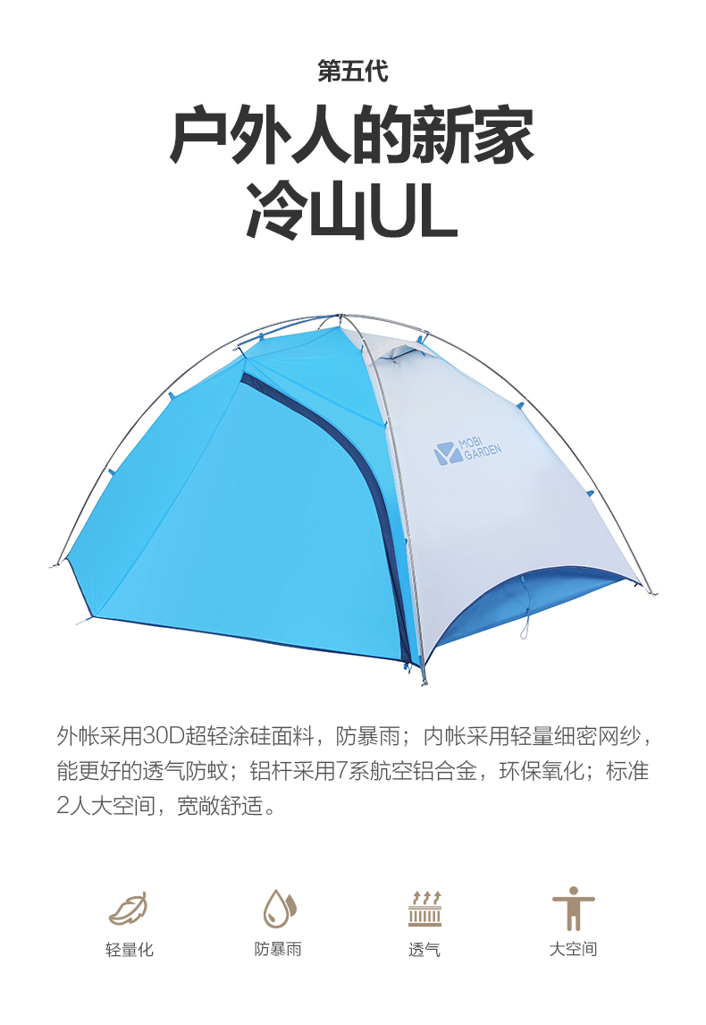 商品名称:牧高笛 户外 野露营防雨防风铝杆双人超轻双层外支架帐篷 新冷山UL
