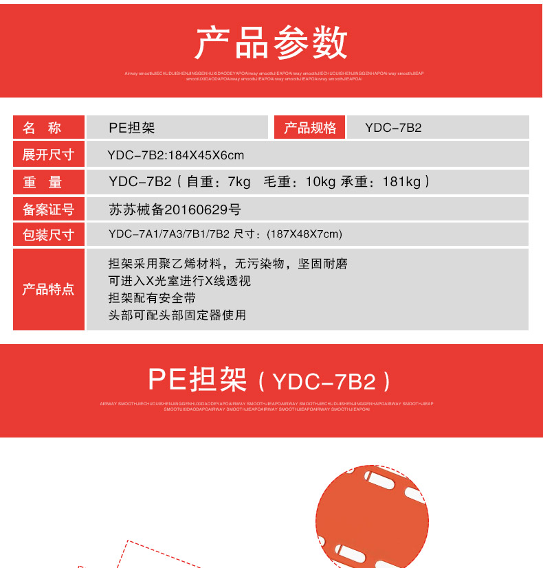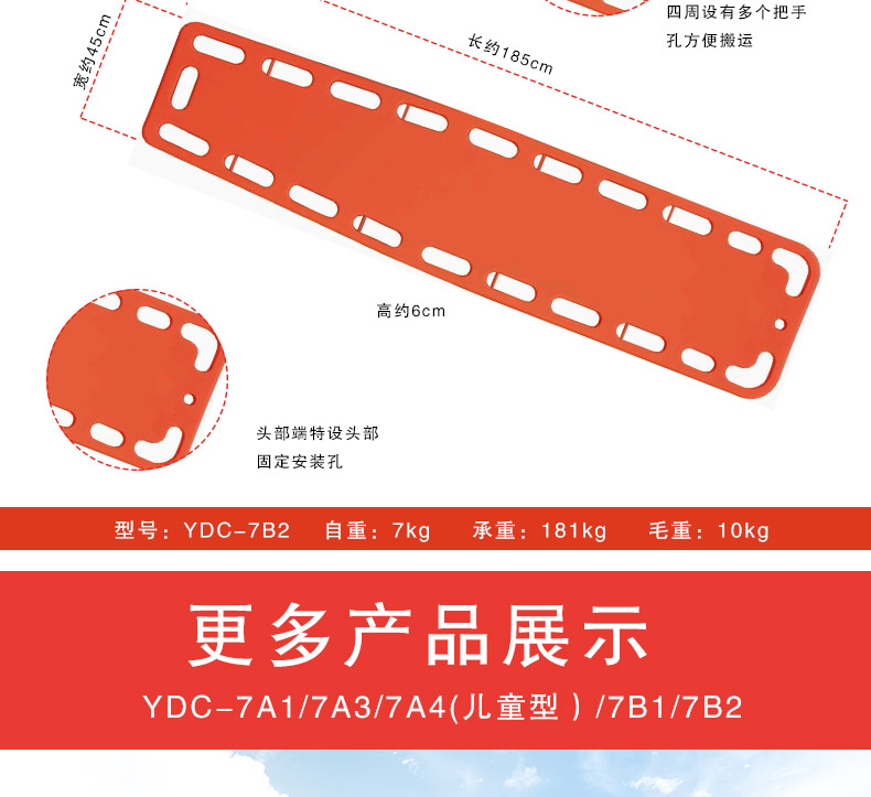 商品名称:日新 PE担架塑料担架可漂浮医院用担架伤员固定板 YDC-7B2