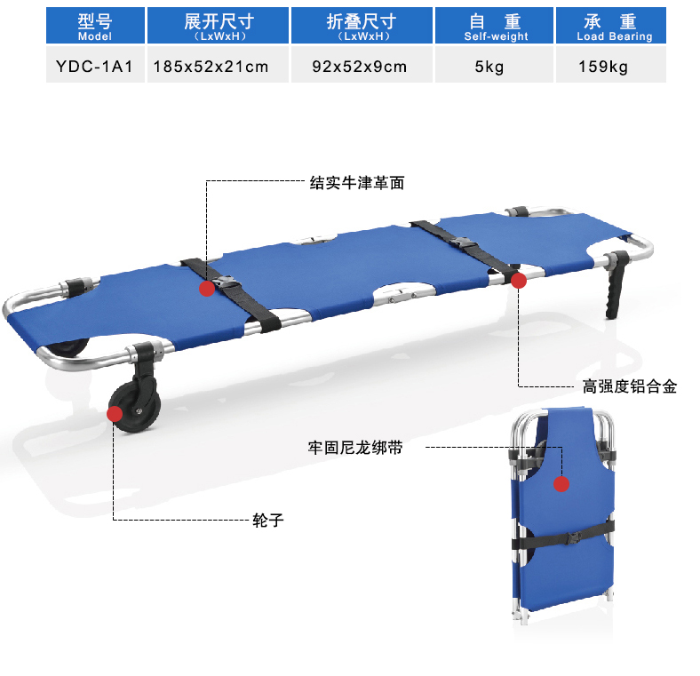 商品名称:日新 急救救生担架折叠钢制担架折叠担架不锈钢担架消防 YDC-1A1