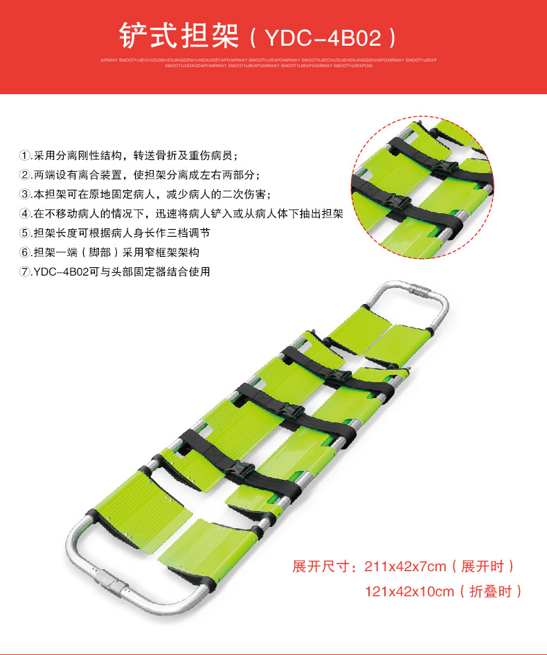 商品名称:日新 急救铝合金铲式担架 可伸缩折叠是医院用担架可透X光 YDC-4B