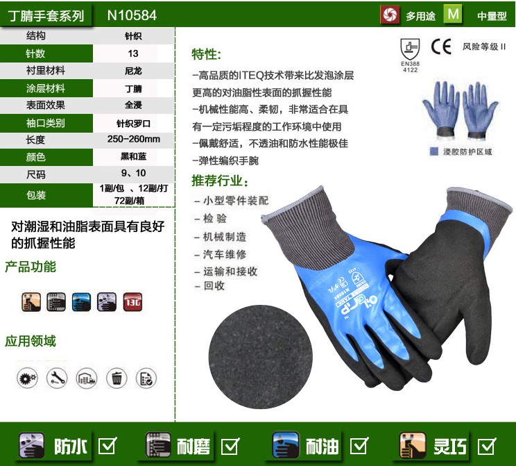 商品名称:赛立特 劳工作乳胶防水防滑耐油耐磨手套水产抓鱼钓鱼农业园艺清洁N10584