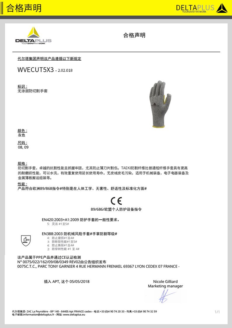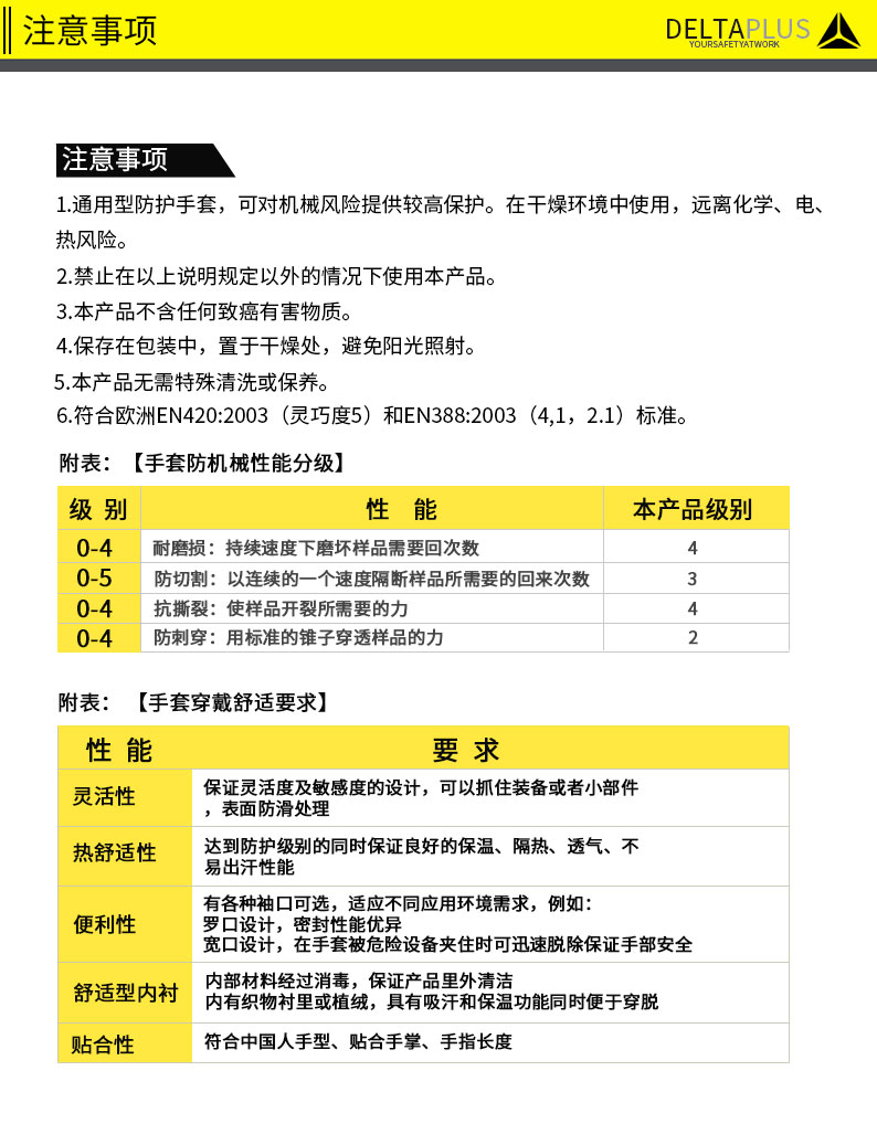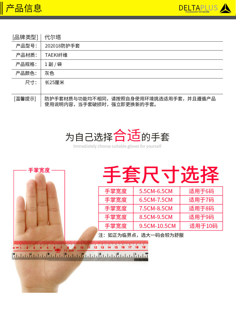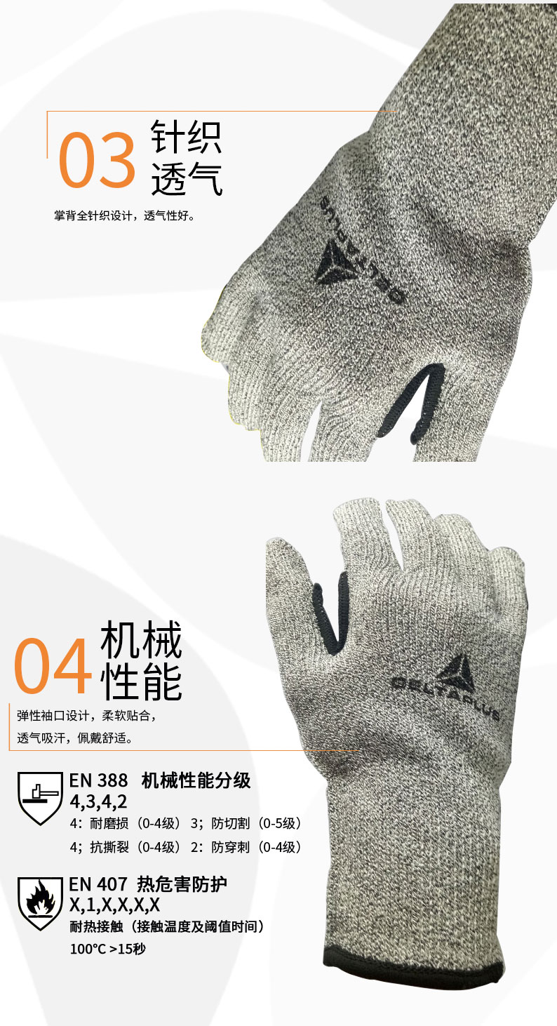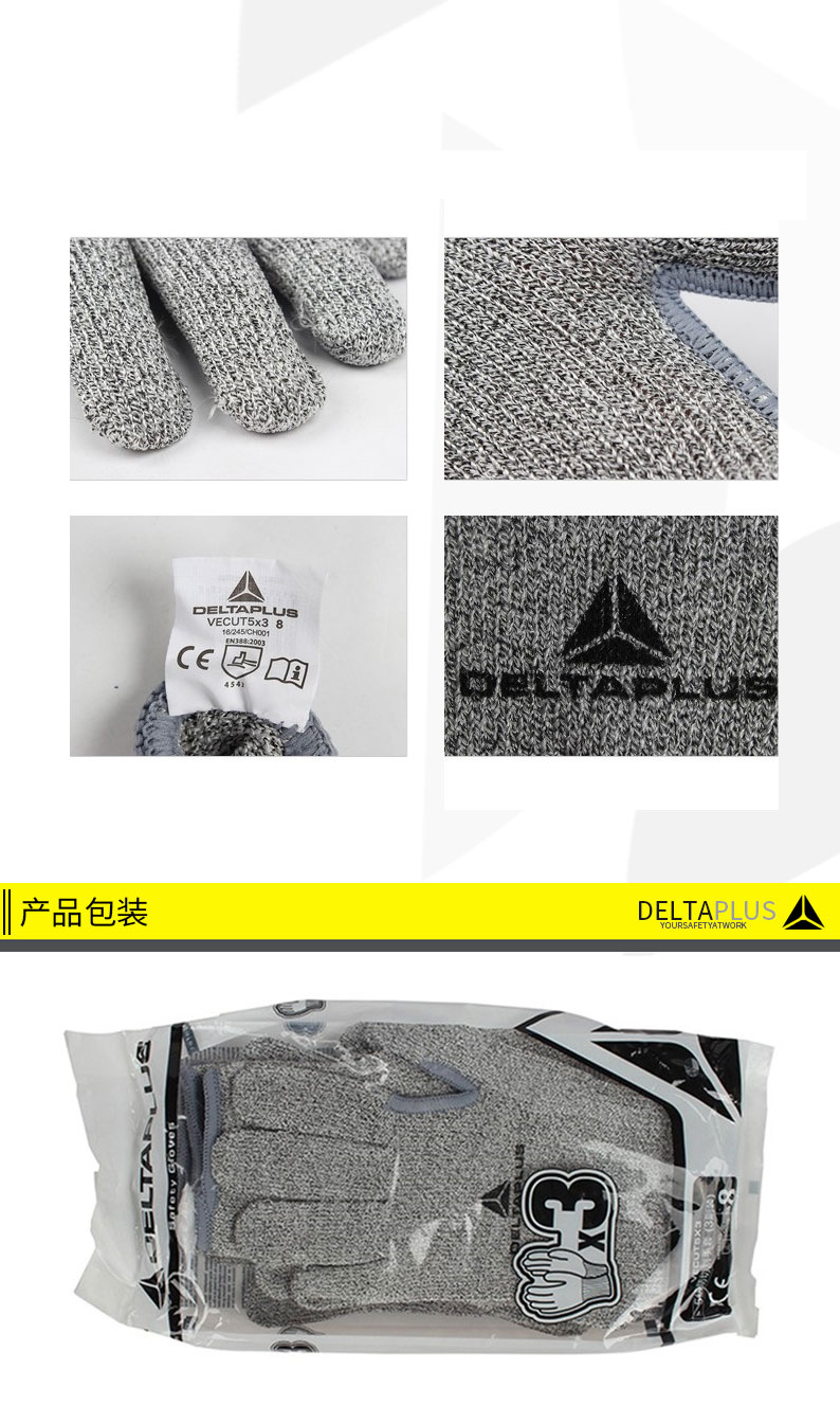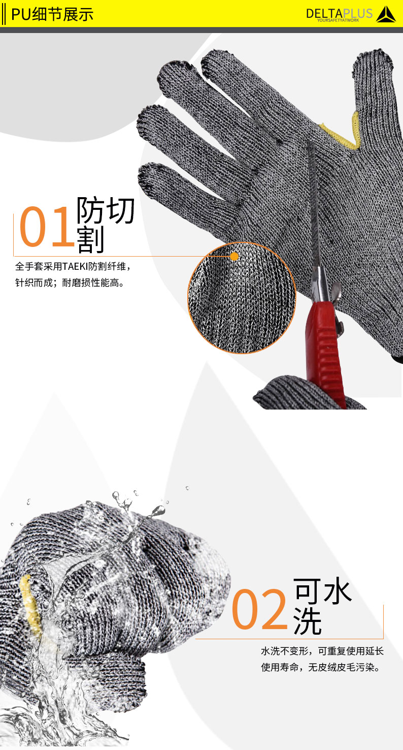 商品名称:代尔塔 202018防割手套工业劳保针织手套耐磨手套防切割手套三副装