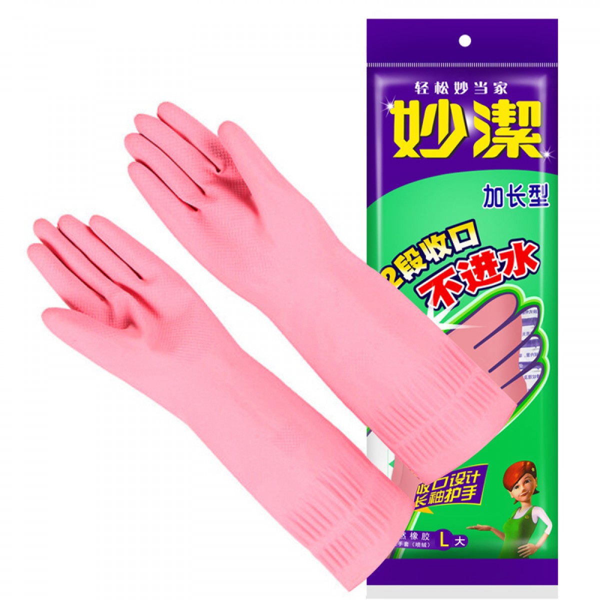 商品名称:妙洁长款橡胶手套大号洗碗家务洗衣服防水刷碗耐用MGAM--B